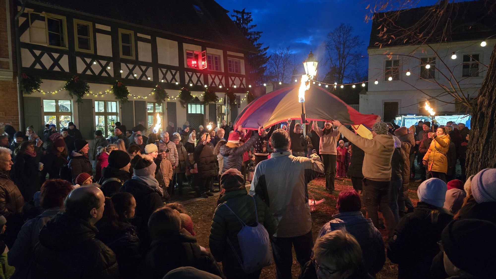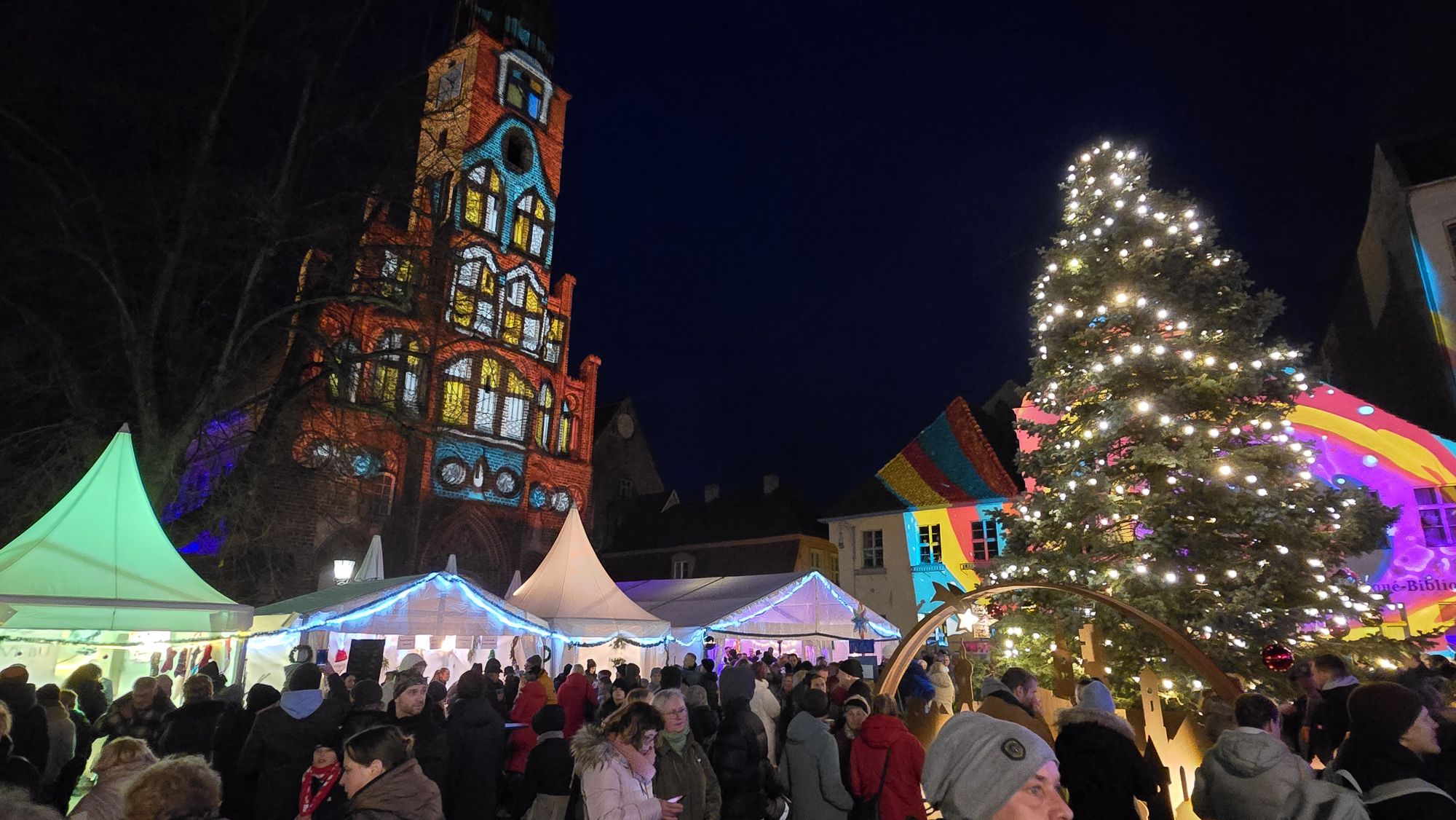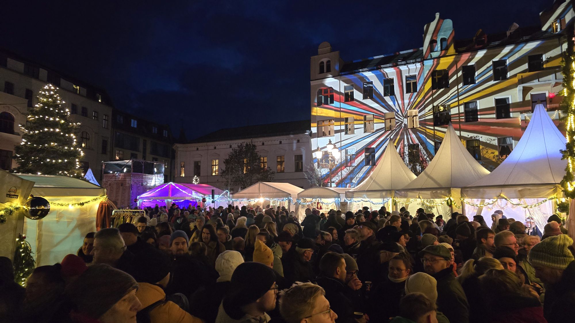 Das Slawendorf punktete mit seinem Wintermarkt und urigen Angeboten wie Bogenschießen und Axtwerfen. Dazu gab es Mittelaltermusik, Stockbrot am Feuer und Flüssigkost an der rustikalen Schänke. Eine kleine, bunte beleuchtete und gut duftende Budenstadt auf dem Johanniskirchplatz lockte zur ähnlich bunt angestrahlten Johanniskirche. Hier wechselten sich Bigband- mit Chor-, Blas- und Rockmusik ab. Außerdem gab es Zauberei, Weihnachtsmannsprechstunde und Gedankentrödelei.