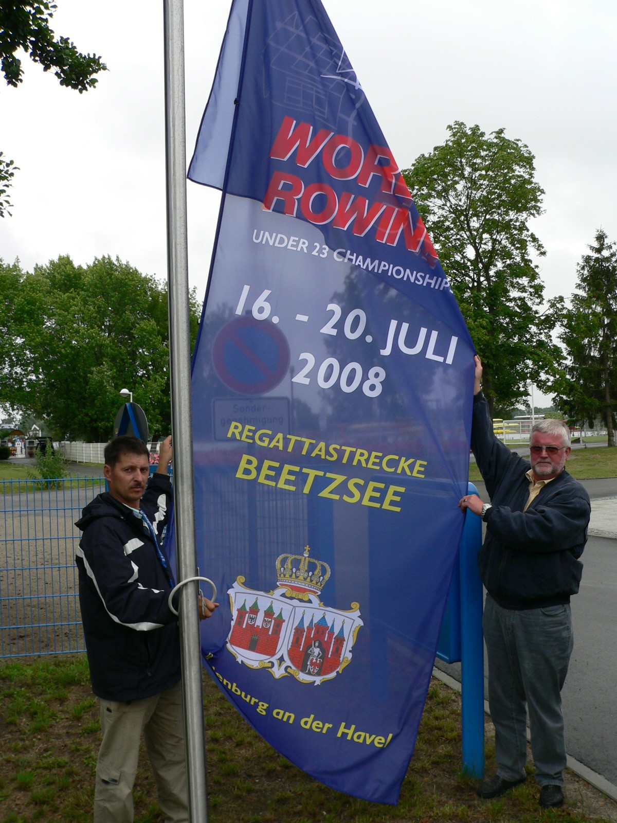 Hartmut Duif, Präsident des Landesruderverbandes Brandenburg und Vorsitzender des Organisationskomitees für die U 23 Ruderweltmeisterschaften 2008, hat am 18.06.2007 gemeinsam mit Regattastrecken-Chef Uwe Philipp am Eingang zur Wettkampfstätte Werbefahnen für das internationale Sportereignis im nächsten Jahr gehisst. Damit sollen die fast 1.200 Teilnehmerinnen und Teilnehmer der Deutschen Jugendmeisterschaften und der Deutschen Jahrgangsmeisterschaften U 17 und U 23 im Rudern sowie die zahlreichen Besucherinnen und Besucher der vom 21. – 24.06.2007 auf der Brandenburger Regattastrecke „Beetzsee“ stattfindenden nationalen Titelkämpfe schon jetzt auf diesen außergewöhnlichen Sporthöhepunkt 2008 aufmerksam gemacht werden.