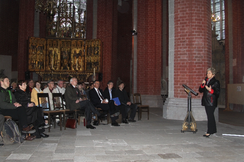 In der St. Katharinenkirche von Brandenburg an der Havel wurde am Freitag, 31.05.2013, im feierlichen Rahmen der Abschluss der Restaurierungsarbeiten am Hedwigsaltar und an den mittelalterlichen Wandmalereien in der Südvorhalle vollzogen. In ihrem Grußwort würdigte Oberbürgermeisterin Dr. Dietlind Tiemann das beispielgebende Engagement, mit dem die Ostdeutsche Sparkassenstiftung und die Mittelbrandenburgische Sparkasse in Potsdam dieses wichtige Projekt unterstützt hat. An Friedrich-Wilhelm von Rauch, Geschäftsführer der Ostdeutschen Sparkassenstiftung (OSS), und Johannes Werner, Vorstandsvorsitzender der Mittelbrandenburgischen Sparkasse in Potsdam (MBS), gewandt, sagte sie: „Seit vielen Jahren stehen OSS und MBS als Unterstützer fest an unserer Seite, wenn es darum geht, wertvolle Bausubstanz und einmalige Kunstschätze zu retten und für zukünftige Generationen zu erhalten.“