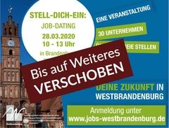 Nach umfangreicher Prüfung der aktuellen Risikobewertung in Bezug auf die Ausbreitung des Corona-Virus (COVID-19) und unter Berücksichtigung der Handlungsempfehlungen des Robert-Koch-Instituts haben sich die Städte Rathenow, Premnitz und Brandenburg an der Havel gemeinsam mit dem Landkreis Havelland nunmehr vorsorglich für eine Absage entschieden. Das Job-Dating wird somit bis auf Weiteres verschoben. Die Kooperationspartner der Wirtschaftsregion Westbrandenburg bitten um Verständnis bezüglich der gemeinsam getroffenen Entscheidung, die die Gesundheit aller Beteiligten und möglicher Gäste aus der gesamten Region im Fokus hat.