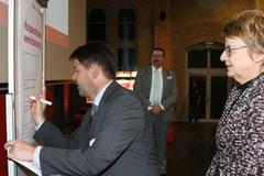 „Unsere Stadt ist ein attraktiver, dynamischer und vielseitiger Wirtschaftsstandort mit einer Ausstrahlung weit in die Region hinein. Kaum eine andere Stadt im Land besetzt so viele unternehmerische Sparten (sogenannte Cluster) wie Brandenburg an der Havel. Für die weitere dynamische Entwicklung unserer Stadt wollen wir den Wissenstransfer zwischen der Technischen Hochschule und der vor allem mittelständischen Wirtschaft in unserer Stadt weiter ausbauen und stärken. Diese Verbindung wird für den Wirtschaftsstandort Brandenburg an der Havel in Zukunft noch entscheidender sein. Die neue Kooperationsvereinbarung ist deshalb unser Bekenntnis zu einer engen Verbindung von Wissenschaft und Wirtschaft in unserer Stadt“, sagt Bürgermeister Steffen Scheller zur gestrigen Unterzeichnung der Kooperationsvereinbarung.