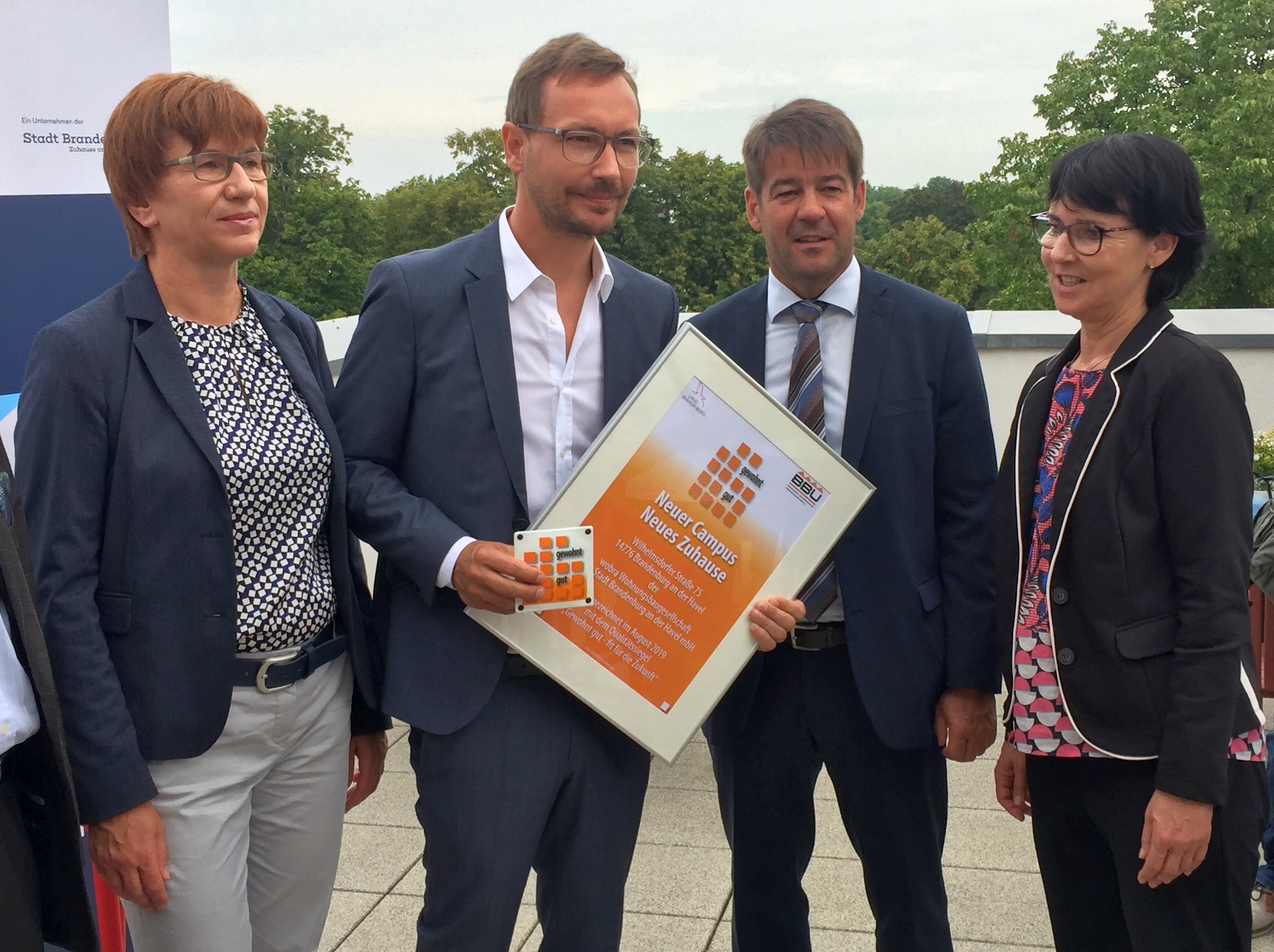 Oberbürgermeister Steffen Scheller gratuliert dem wobra-Geschäftsführer Stephan Falk zu dieser Auszeichnung und sagte: „Die wobra hat mit viel Engagement und Initiative angepackt und das Projekt „Neuer Campus. Neues Zuhause.“ Erfolgreich umgesetzt. Mit dem Fokus auf studentisches Wohnen hat es die wobra möglich gemacht, kurzfristige Mietverhältnisse zu begründen und damit den Weg für andere geebnet.“