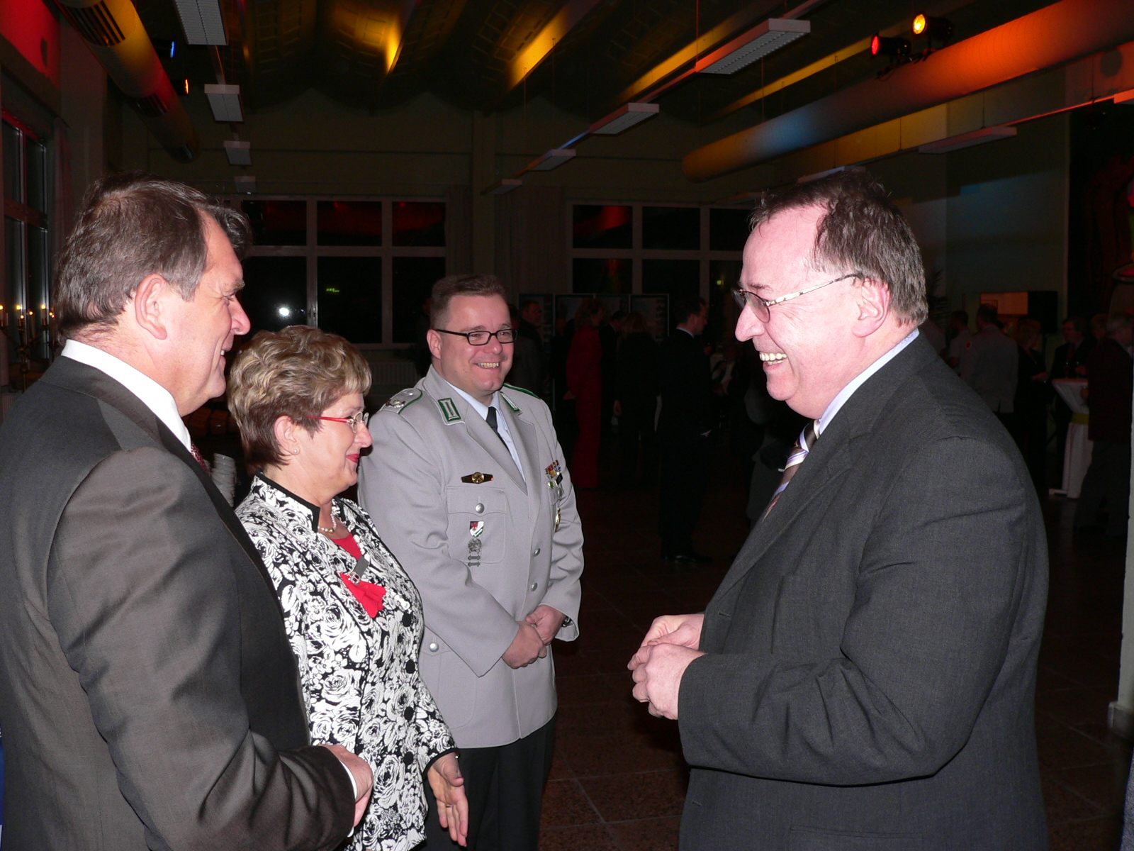 Oberbürgermeisterin Dr. Dietlind Tiemann, IHK-Präsident Dr. Victor Stimming und der stellvertretende Bataillonskommandeur Major Königer begrüßten neben Vertretern der Landesregierung, benachbarter Gemeinden und Kreise und vielen hochrangigen Gästen aus Politik und Wirtschaft der Stadt und der Region auch zahlreiche Ehrenamtler und Vertreter von Vereinen und Verbänden, die den Abend für interessante Gespräche und zur Kontaktpflege nutzten.
