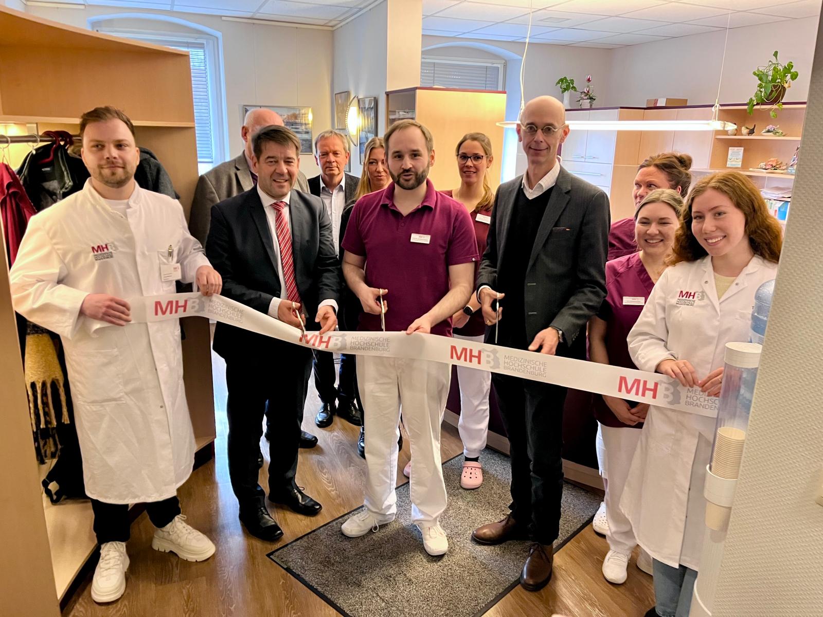 Und bis an der geplanten Zahnmedizinischen Hochschule im alten E-Werk in der Bauhofstraße im Jahr 2026 die Studierenden begrüßt werden können, ist mit der Hochschulambulanz am Standort Brandenburg an der Havel früher als geplant eine weitere Mit- und Notversorgung für Patientinnen und Patienten entstanden. Hier arbeiten angehende Zahnärztinnen und Zahnärzte der MHB praxisorientiert mit Angestellten der ursprünglichen Praxis zusammen.