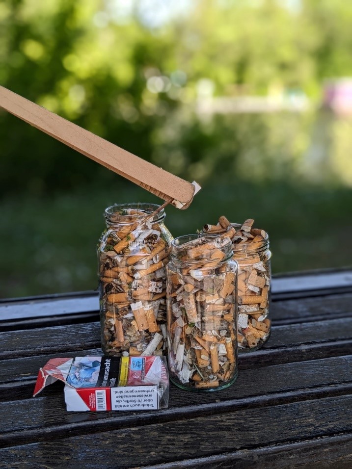 Zigarettenkippen sind weltweit das am häufigsten weggeworfene Abfallprodukt. Durch Sonneneinstrahlung und Regen gelangen die Giftstoffe in unsere Umwelt. Bereits eine einzige Zigarettenkippe kann zwischen 40 bis 60 Liter sauberes Grundwasser verunreinigen und damit Pflanzen und Tiere vergiften.