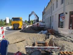 Derzeit erfolgt die Erneuerung des alten Mischwasserkanals in einer Tiefenlage bis ca. 2,40 m im Auftrag der BRAWAG GmbH. Diese Arbeiten können jedoch nur abschnittsweise erfolgen, da sämtliche Erdarbeiten archäologisch begleitet und dokumentiert werden müssen.