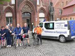 Auf der 10. Etappe der Europaradtour 2009, die am 06.05.2009 von Magdeburg nach Potsdam führte, machten die Teilnehmerinnen und Teilnehmer um die Mittagszeit auch Station in Brandenburg an der Havel. Die sieben Männer und eine Frau aus verschiedenen europäischen Staaten wurden vor dem Altstädtischen Rathaus begrüßt und zum Mittagessen eingeladen, um sich für den zweiten Teil des Tagesabschnitt zu stärken.
