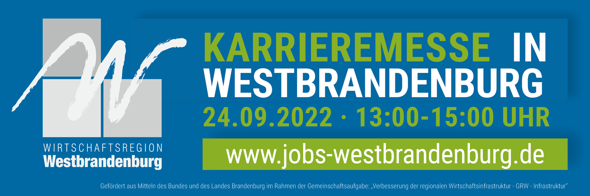 Die Wirtschaftsregion Westbrandenburg bietet viele spannende Jobs und Möglichkeiten und ist ein attraktiver Arbeitsort. Um dies zu zeigen, lädt die Wirtschaftsregion Westbrandenburg am 24. September 2022 erstmals zur „Karrieremesse in Westbrandenburg“ ein. Die Karrieremesse ist Teil der Fachkräfte – Kampagne „Deine Zukunft in Westbrandenburg“ und zählt zu den umfassenden Maßnahmen im Bereich der Arbeits- und Fachkräftesicherung. Dadurch soll die regionale Wirtschaft gestärkt werden.