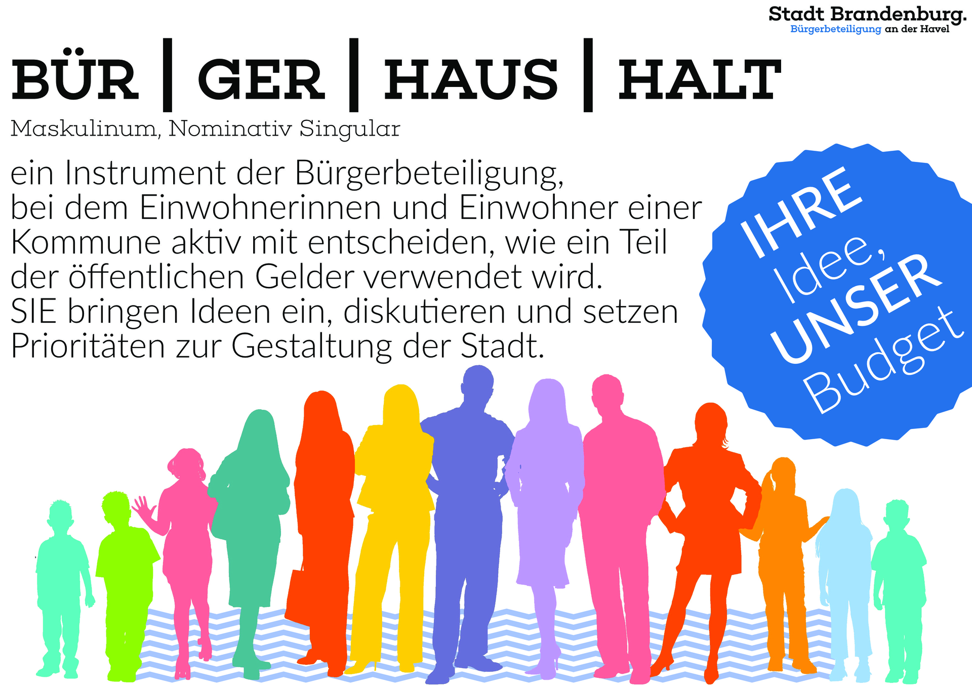 Die Bürgerinnen und Bürger der Stadt Brandenburg an der Havel können im Rahmen einer Bürgerbeteiligung über einen Teil frei verwendbarer Haushaltsmittel selbst entscheiden. Diesen Prozess begleitet die Stadtverwaltung moderierend und beratend. Die verfügbaren Finanzmittel für die Durchführung von Projekten aus dem Bürgerhaushalt belaufen sich auf insgesamt 150.000 Euro.