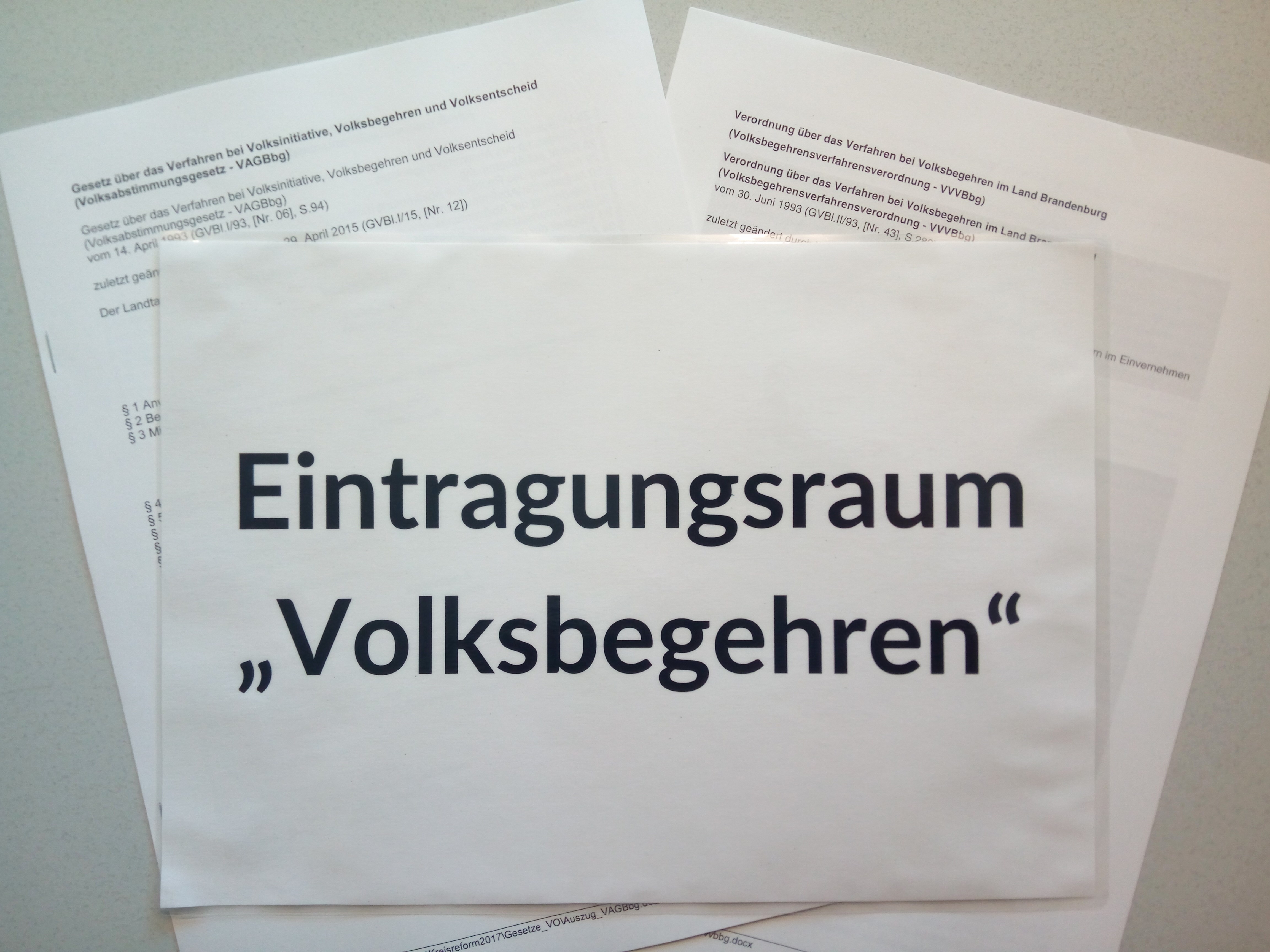 Personen, die sich in die Eintragungslisten eintragen wollen, haben sich über ihre Person auszuweisen (§ 7 Absatz 1 Volksbegehrensverfahrensverordnung – VVVBbg).