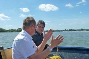 Nach der Begrüßung des Gastes und einem kurzen Gespräch in sportlich-lockerer Atmosphäre, brach Uwe Philipp mit seinen Gästen zu einem Rundgang über das weitläufige Gelände der Regattastrecke auf. Besonderes Interesse zeigte der Gast aus Indien für die moderne Technik im Zielturm. Es folgte eine Bootsfahrt über die bereits für die am Wochenende stattfindenden 27. Ostdeutschen Meisterschaften im Kanu-Rennsport vorbereitete Regattastrecke, bei der u.a. das Albano-System für die Bahnmarkierungen und die mobilen Schwimm-Türme für die Zwischenzeitnahme erklärt wurden.