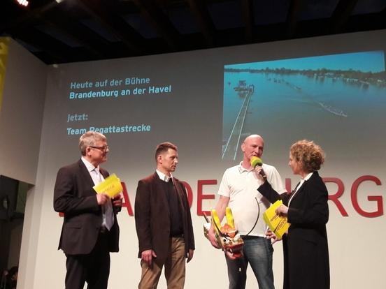 (29.01.2018) Einen Auftritt auf der Bühne von Antenne Brandenburg bei der Internationalen Grünen Woche 2018 haben Regattastrecken-Chef Uwe Philipp und Matthias Nitsche vom Regattateam Brandenburg Beetzsee e.V. genutzt, um die Besucher in der Brandenburg-Halle über die Highlights der in drei Monaten beginnenden Wettkampfsaison zu informieren.