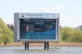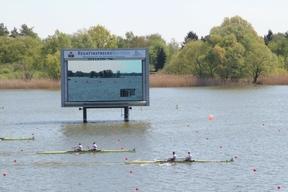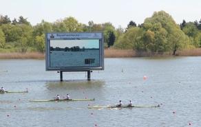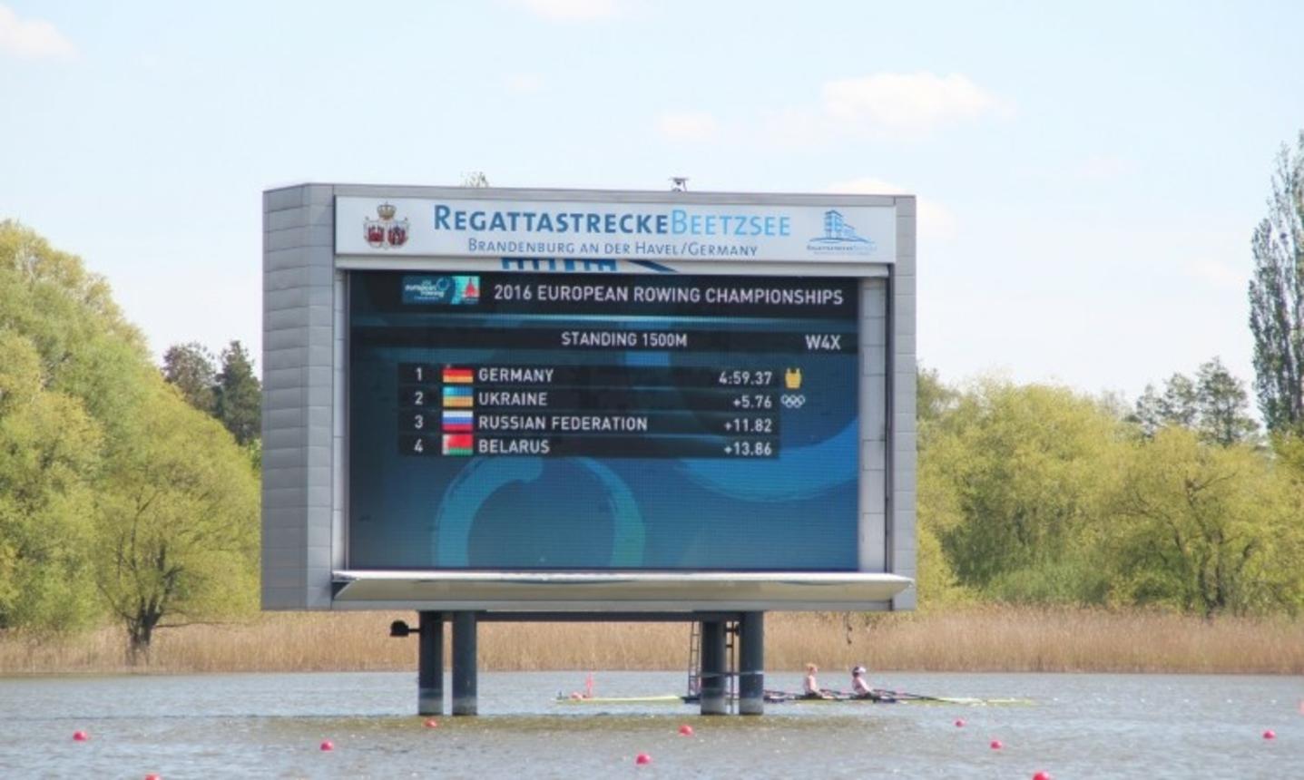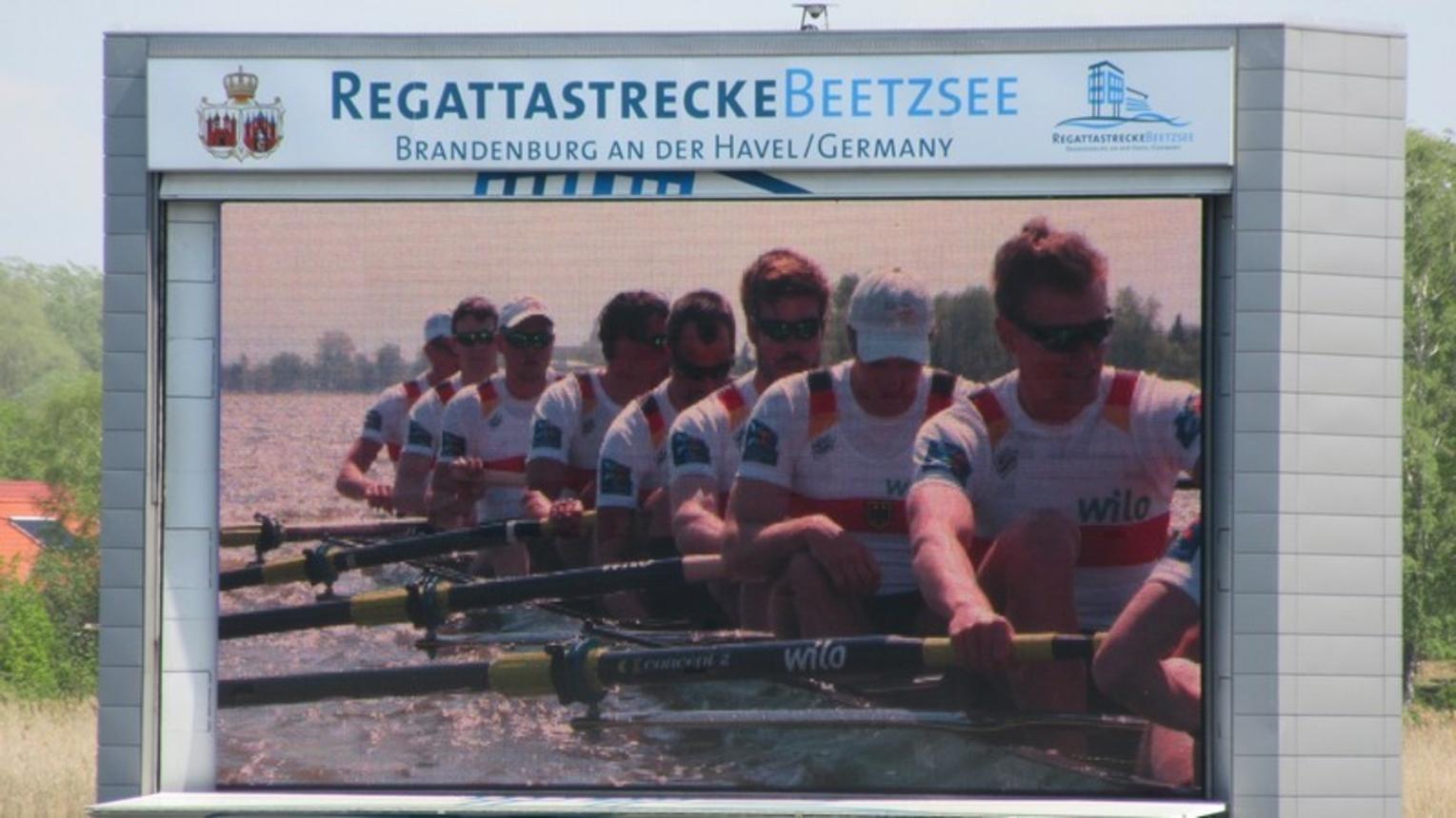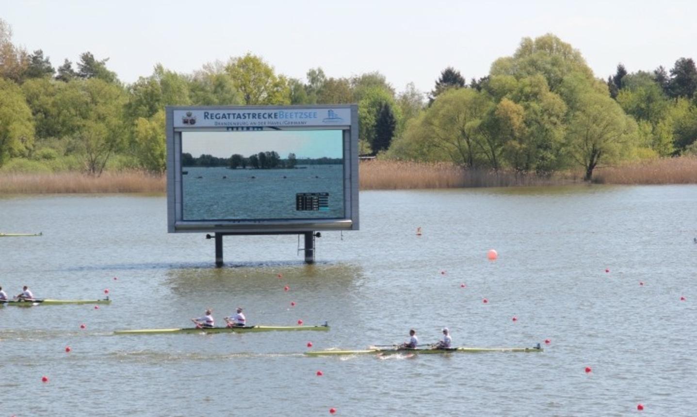 Wo gibt es das sonst noch, eine Video-Anzeigetafel, die mitten im See steht? Bei der Modernisierung und Erweiterung der Regattastrecke „Beetzsee“ wurde diese ungewöhnliche Variante realisiert.