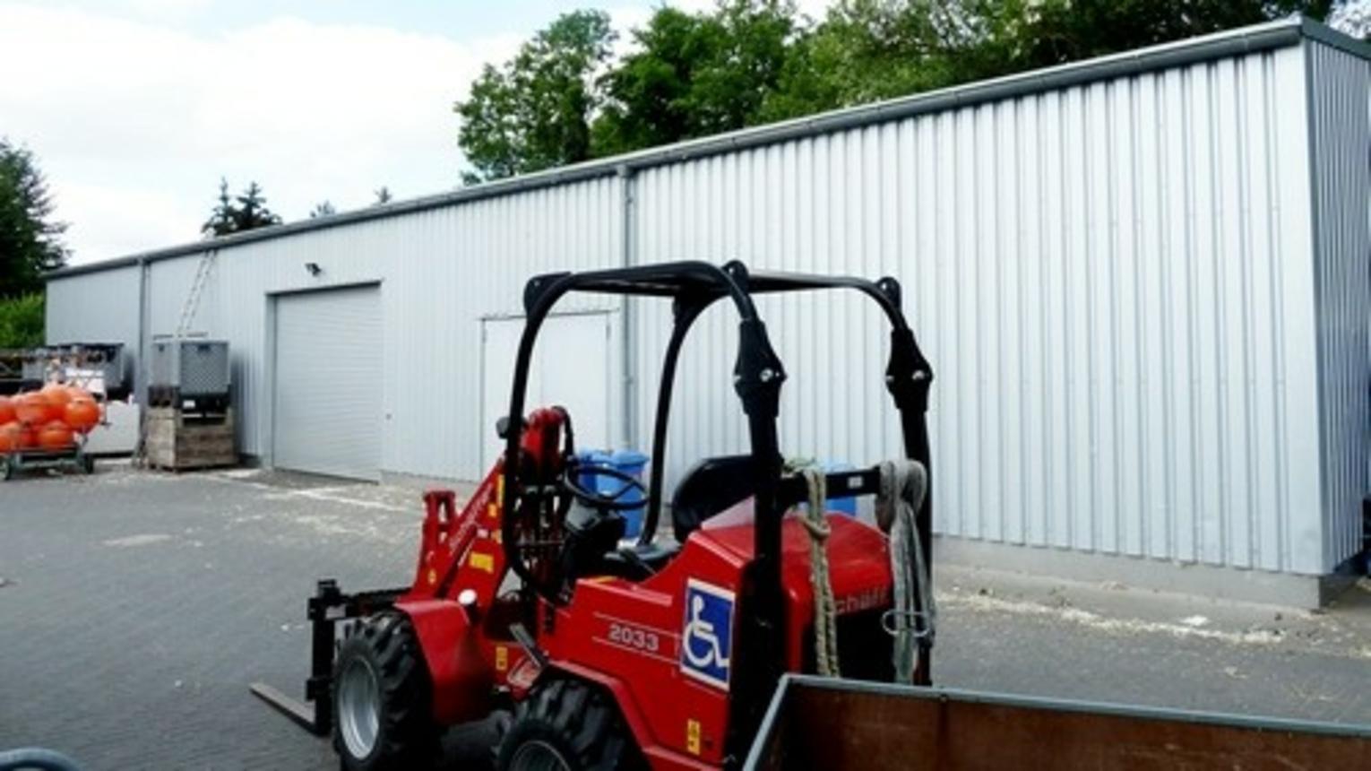 Die neue in Leichtmetallbauweise entstandene Fahrzeug- und Lagerhalle befindet sich hinter dem Werkstattgebäude.