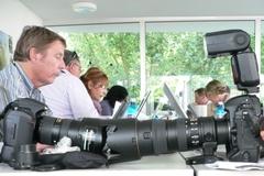 Das Pressezentrum ist ca. 70 m² groß. Es verfügt über einen separaten Zugang. In Abhängigkeit von der Anzahl der Journalisten können bis zu ca. 30 Arbeitsplätzen geschaffen werden. Vor dem Pressezentrum befindet sich ein Aufenthaltsbereich mit Sitzschalen.