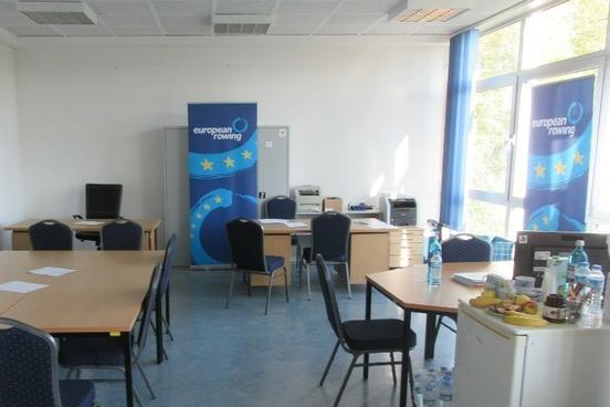 Im Obergeschoss beherbergt es mehrere Büroräume, eine Teeküche mit Aufenthaltsraum für die Organisatoren oder Vertreter von Verbänden, einen Beratungsraum sowie nicht öffentliche Toiletten. Für die Organisatoren von Sportveranstaltungen stehen 5 möblierte Büros zur Verfügung. Bei Bedarf kann die Ausstattung entsprechend erweitert und den Bedürfnissen der Nutzer angepasst werden. Alle Arbeitsräume verfügen über Internetanschluss/WLAN und sind an die digitalen Informationskanäle der Regattastrecke angeschlossen.