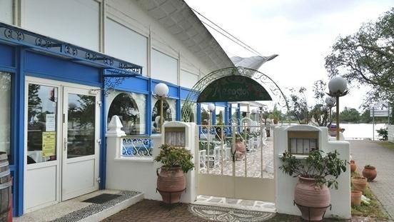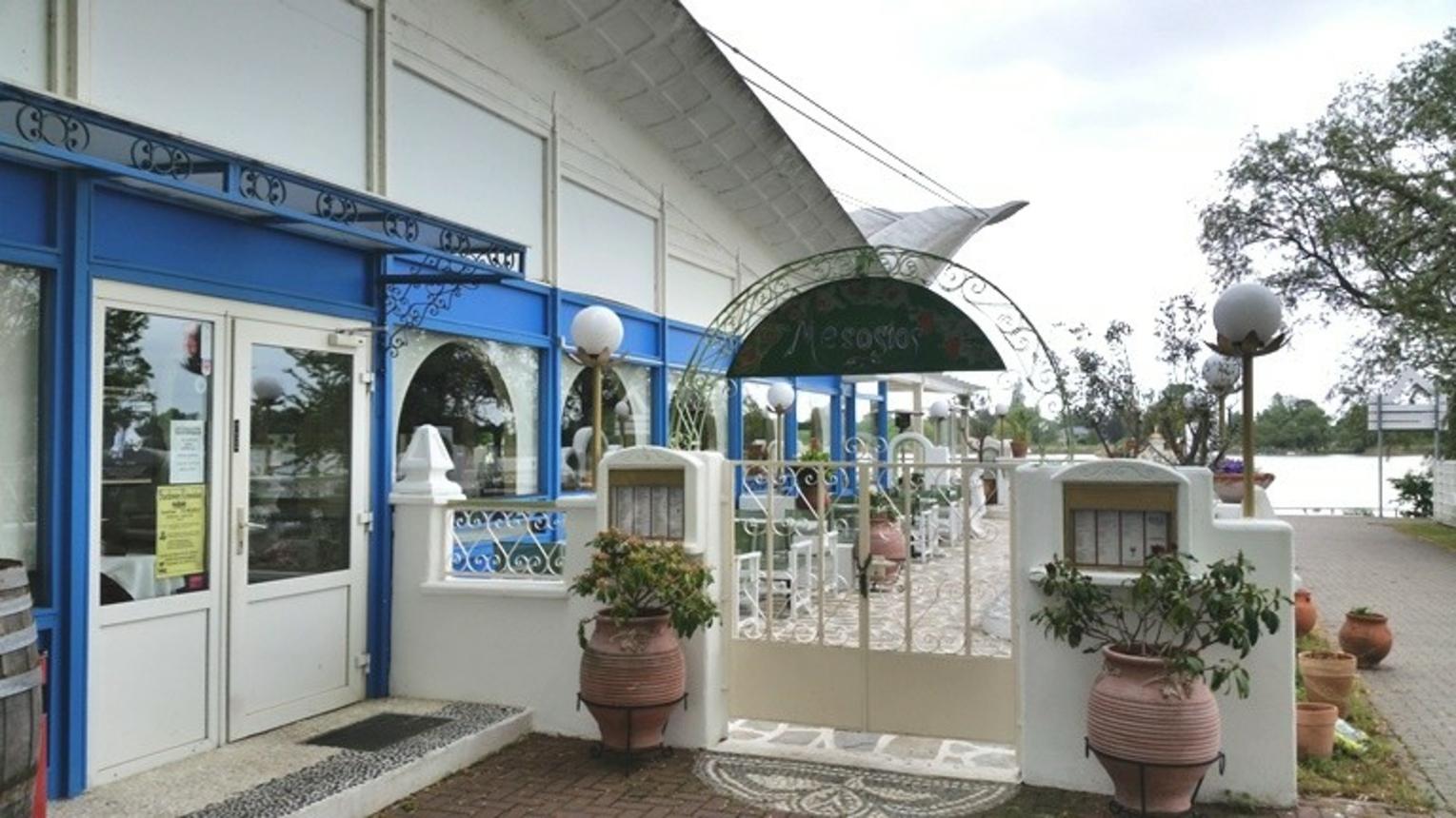 Das heutige Restaurant „Mesogios“ ist aus dem so genannten „Steinadler“ hervorgegangen. Diesen Namen verdankt das Gebäude seinem architektonisch interessantem Dach, das an die ausgebreiteten Schwingen eines Adlers erinnert. Die Erbauer der Regattastrecke hatten sich Ende der 1960-er Jahre eine sehr interessante Variante für die Überdachung der Sitzplätze vor dem ursprünglichen Kiosk ausgedacht. Einige Jahre später wurde die Freifläche unter dem markanten Dach dann zu einer „richtigen“ Gaststätte umgebaut.