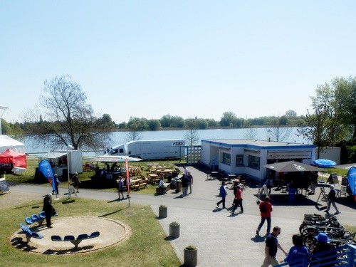 Es befindet sich ca. 200 m von der Regattastrecke entfernt auf dem Gelände des Sportplatzes am Kreisverkehr und ist durch seinen markanten rötlichen Farbanstrich gut zu erkennen. Der Zugang zum Akkreditierungsbereich erfolgt über die Zufahrt zum Sportplatz.