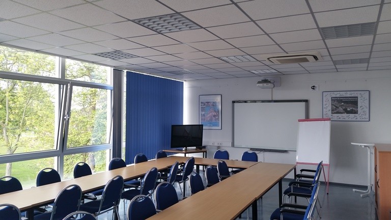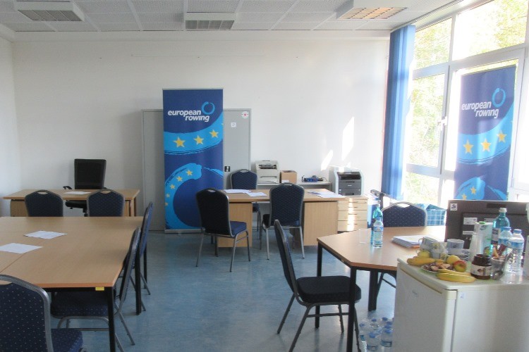 Der Beratungsraum hat eine Größe von 66 m². In der Grundausstattung verfügt er über Tische und Stühle, die variabel angeordnet werden können. Er bietet Platz für maximal 40 Personen. Moderne Präsentationstechnik ( u.a. Beamer und Smartboard etc.) ist vorhanden. Der Raum ist klimatisiert und an der großen Fensterfront befinden sich Sonnenschutz-Jalousien. In Abstimmung mit dem Team der Regattastrecke kann der Raum auch für Ausstellungen genutzt werden. Ein entsprechendes Schienensystem zum Abhängen von Bilderrahmen ist installiert und Ausstellungsvitrinen sind vorhanden.