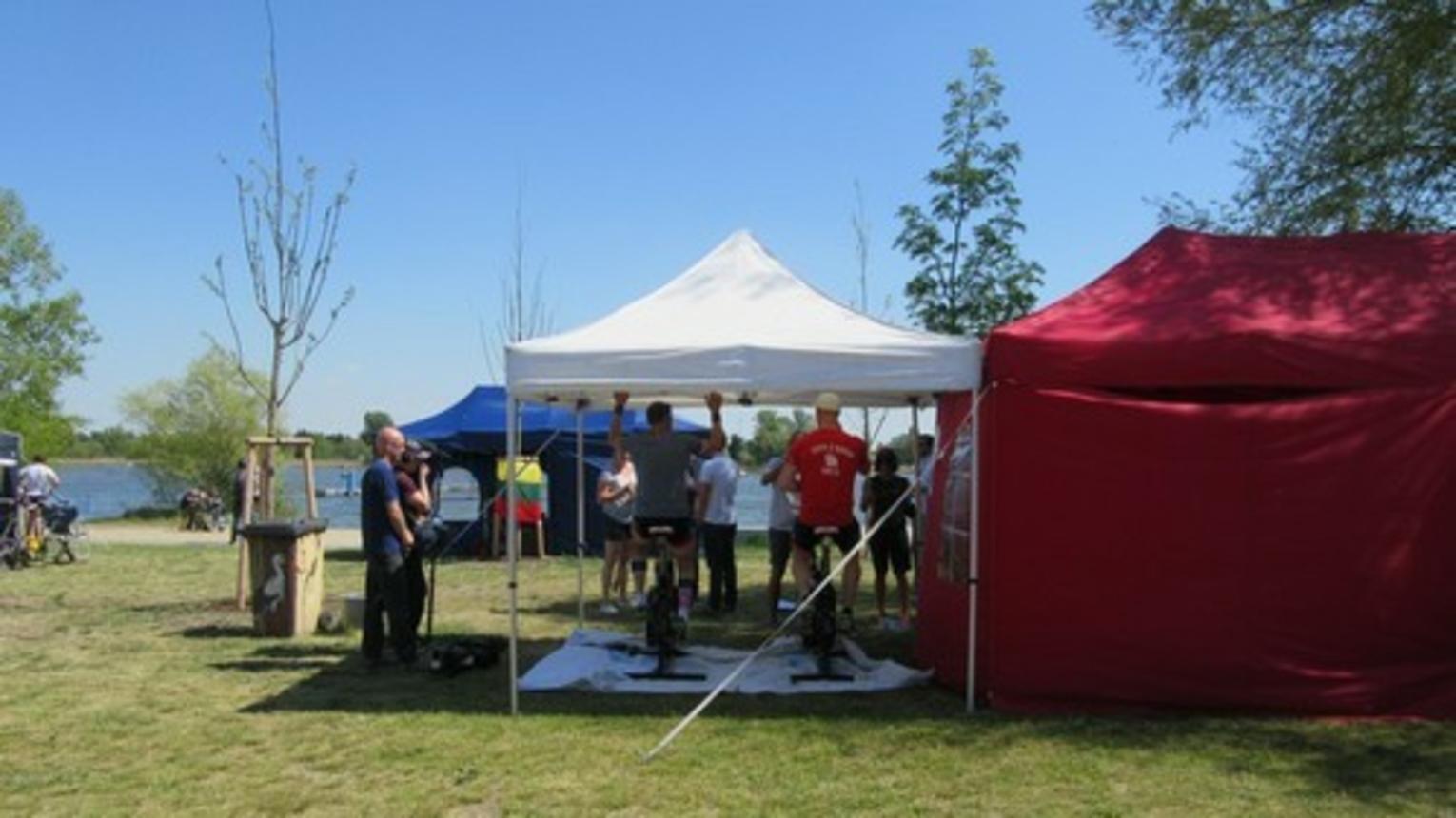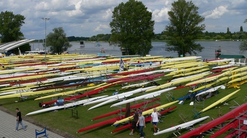 Der Bereich für die Vor- und Nachbereitung der Boote, umgangssprachlich auch als „Sattelplatz“ bezeichnet, umfasst ein Gelände von ca. 12.000 m². Es stehen ausreichend Gestelle für die Bootslagerung zur Verfügung, die den Veranstalterwünschen entsprechend auf der Rasenfläche aufgestellt werden können. Vom Sattelplatz aus führen kurze Wege zu den An- und Ablegestegen. Ein Steg davon ist speziell für behinderte Sportlerinnen und Sportler ausgelegt.