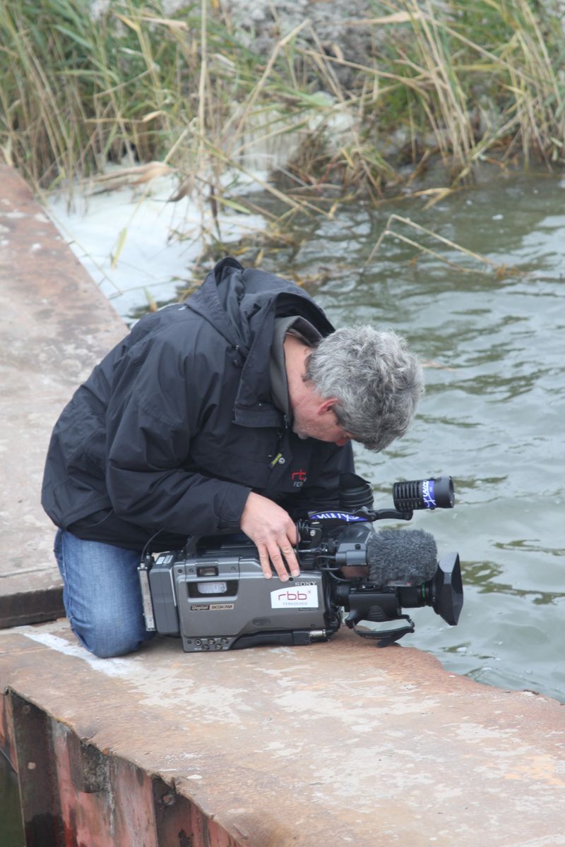 Neben den Journalisten von den lokalen Printmedien und vom Stadtfernsehen war auch ein Team des ARD-Senders Rundfunk Berlin-Brandenburg (rbb) vor Ort, um die Arbeit der Wasserbauer zu filmen und einen Beitrag für die Nachrichtensendung „Brandenburg aktuell“ zu produzieren.