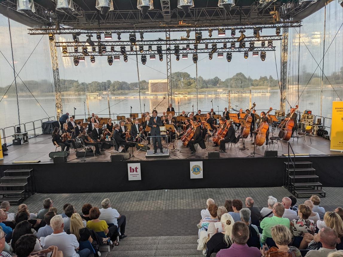 Am letzten Juliwochenende wurde den Brandenburgerinnen und Brandenburgern ein Höhepunkt der besonderen Art geboten. Die Freunde der klassischen Musik kamen erstmalig auf der Regattastrecke auf ihre Kosten. 850 Zuschauerinnen und Zuschauer sahen von der Tribüne aus die erfolgreiche Aufführung der „Brandenburger Wassermusiken“ und lauschten in dieser außergewöhnlichen Umgebung den faszinierenden Klängen der Brandenburger Symphoniker.