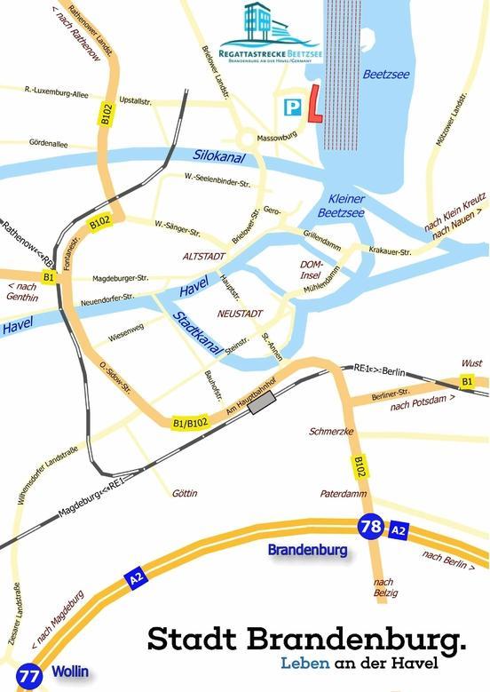 Bitte ggf. bestehende Umleitungen beachten! Die offizielle Anschrift der Regattastrecke (zur Programmierung des Navigationsgerätes) lautet: An der Regattastrecke 1, 14772 Brandenburg an der Havel