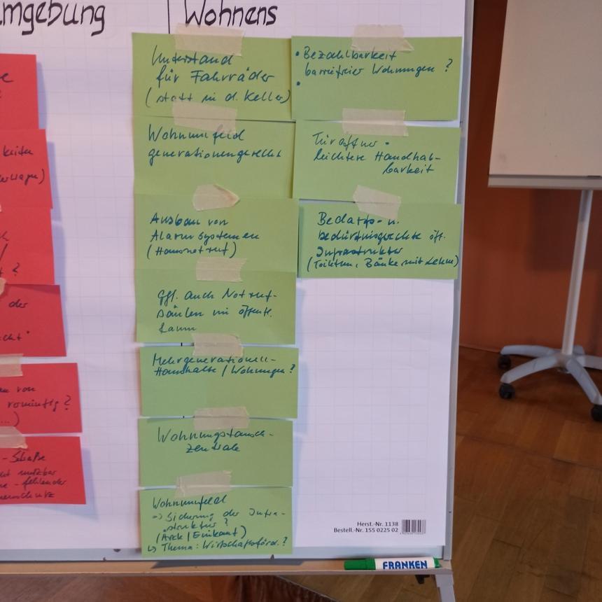 Zum Thema Digitalisierung wurde ergänzend zu den notierten Punkten die Wohnung als „Reallabor“ angeführt. Darunter wird eine altersgerecht ausgebaute Musterwohnung verstanden, die als SMARTE Wohnung digitale Lösungen für ältere Menschen veranschaulicht, um das Älterwerden im vertrauten Wohnumfeld zu ermöglichen.