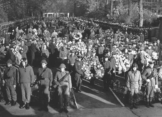 255 während der Kämpfe gefallene Sowjetsoldaten wurden hier bis Oktober 1945 in Einzel- und Sammelgräbern bestattet. Im gesamten Stadtgebiet fanden mindestens 681 sowjetische Militärangehörige ihre letzte Ruhestätte.
