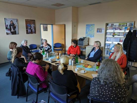 Als abschließenden Programmpunkt lud Frau Andersen die Teilnehmerinnen erneut ins Rathaus, zu einem gemeinsamen Treffen mit IHK Mitarbeiterin Jana Böse, der TÜV Akademie aus Brandenburg an der Havel und Frau Jeanette Horn (Gleichstellungsbeauftragte der Stadtverwaltung) ein.