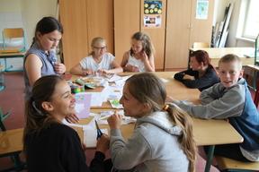 Der Aufenthalt der dänischen Gäste begann mit einer Erkundung der Schule (Rallye) und einer gemeinsamen Sportstunde. Im Anschluss tauschte man sich über das unterschiedliche Schulsystem in Deutschland und Dänemark aus und gestaltete jeweils in deutsch-dänischen Gruppen ein sogenanntes lapbook (eine Mappe, die sich mehrfach aufklappen lässt und in die kleine Faltbücher, Taschen, Klappkarten, Pop-ups, Umschläge etc. eingeklebt sind), das die dänischen Gäste mit an ihre Østerhøjschule in Ballerup nehmen werden. Während eines Stadtrundganges konnten die Schülerinnen und Schüler die schöne Havelstadt erkunden. Auf dem bunten Programm des Austausches standen zudem eine Präsentation der dänischen Kinder über ihre Kommune Ballerup, ein Projekttag im Slawendorf, ein Besuch des Marienbades sowie ein Ausflug in den Berliner Zoo.