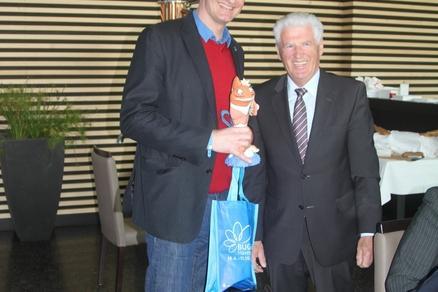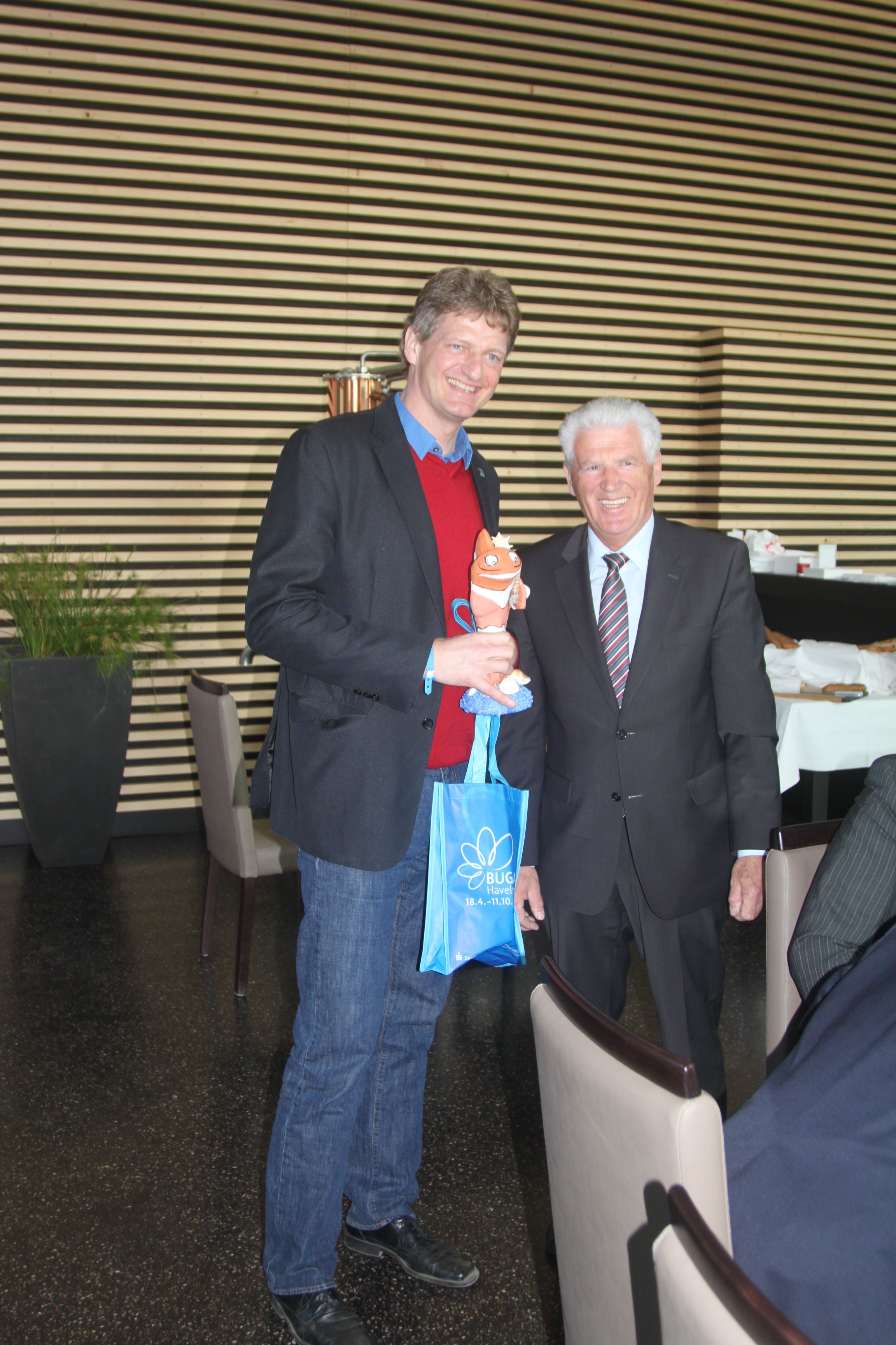 Bevor es für die Delegationen aus Kaiserslautern und Ballerup wieder in Richtung Heimat ging, konnten sich die Gäste mit dem höchsten mobilen Aussichtsturm der Welt, dem „BUGA-Skyliner, von der wunderschönen Havelstadt und einem atemberaubenden 360°-Panoramablick in über 70 Metern Höhe faszinieren lassen. Im Anschluss konnten die pfälzischen und dänischen Gäste während einer Schiffsfahrt die Schönheit der Brandenburger Gewässer genießen. Zum Abschluss überreichten der SVV-Vorsitzende Walter Paaschen, der Beigeordnete Dr. Wolfgang Erlebach und Frau Dr. Margrit Spielmann anlässlich der BUGA-Eröffnung jeweils eine kleine Ausgabe der Skulptur des BUGA-Maskottchens „Wilma Wels“ an die Delegationsleiter, den Bürgermeister von Ballerup, Jesper Würtzen und den Bau-Beigeordneten, Peter Kiefer aus Kaiserslautern.