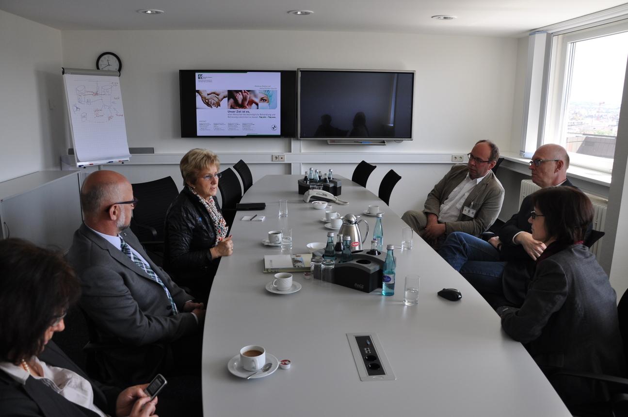 Die Entwicklung und die Idee der zukunftsorientierten Wohntechnik miteinander zu verbinden, wurde anschaulich bei einem Besuch einer Wohnanlage der kommunalen Wohnungsgesellschaft BAU-AG dargestellt. Hier steht PAUL, der persönliche Assistent für unterstütztes Leben, im Vordergrund. PAUL steuert beispielsweise Lampen und Rollläden. Auch Steckdosen, an denen Geräte wie Bügeleisen, Herd oder Kaffeemaschine angeschlossen sind, können beim Verlassen der Wohnung mit einem einzigen Tastendruck ausgeschaltet werden. Alle 20 Wohneinheiten sind mit der zukunftsorientierten Technik ausgestattet, die die Bewohner in ihren eigenen vier Wänden begleitet und von ihnen mit steigendem Alter mehr und mehr in Anspruch genommen werden kann. Im Anschluss besuchte die Brandenburger Delegation noch das Westpfalz-Klinikum am Standort Kaiserslautern und ließ sich die technische Ausstattung und das Leistungsspektrum dieser wichtigen medizinischen Einrichtung näher erläutern.