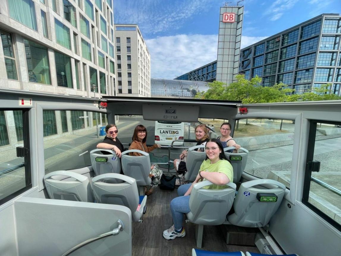 Durch die gute Anbindung und Nähe zu Berlin, fuhren die Auszubildenden am darauffolgenden Tag zum Berliner Hauptbahnhof. Nach einer Bustour durch die Stadt, folgte eine Führung durchs Futurium, das Haus der Zukünfte in dem es vor Allem um die Frage geht: Wie wollen wir leben? Die Auszubildenen erhielten interessante Einblicke in unterschiedliche Zukunftsentwürfe wie Roboter-Menschen, begrünte Hochhäuser oder gemeinschaftliche Ökonomien.
