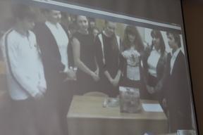 Im Anschluss erfolgte eine Präsentation der russischen Schülerinnen und Schüler zu ihrer Langzeit-Hausaufgabe aus der letzten Deutschstunde per Videokonferenz am 17.09.2013 zum Thema „Kinder- und Hausmärchen der Brüder Grimm“. Aufgabe war es, eine Märchen-Schatzkiste zu basteln und sie mit verschiedenen Märchenfiguren zu füllen. Die russischen Schülerinnen und Schüler übertrafen mit ihren eigenen kreativen Interpretationen der verschiedenen Märchen alle Erwartungen und brachten die Brandenburger Lehrerinnen und Lehrer sowie die deutschen Schülerinnen und Schüler zum Staunen. Es wurde gespielt, gesungen und getanzt.