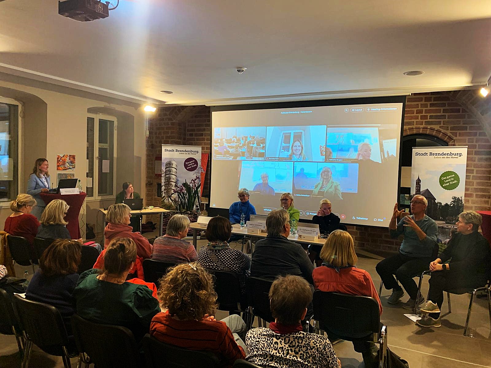 Auf Brandenburger Seite hat Jeannette Horn, Gleichstellungsbeauftragte der Stadt Brandenburg an der Havel, die Veranstaltung moderiert. Sie wurde begleitet von Ilse Promnitz (Bereich Gesundheit), Sabine Schönfuss (Bereich Wirtschaft) und Dr. Katharina Burges (Bereich Kunst und Kultur).