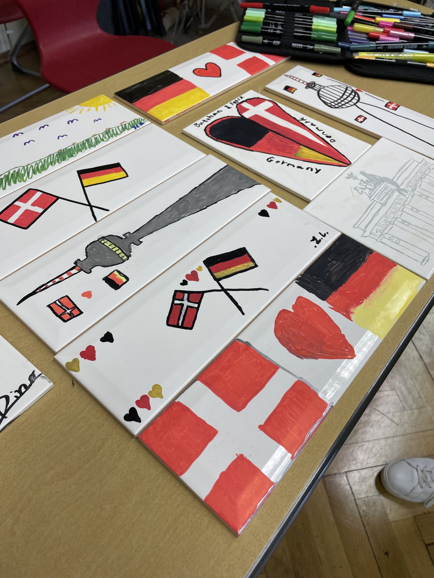Insgesamt reisten 75 dänische Achtklässlerinnen und Achtklässler sowie sechs Lehrkräfte an. Schon vor Schuljahresbeginn hatten sich die Jugendlichen und das Kollegium der Otto-Tschirch-Oberschule intensiv auf diesen Tag vorbereitet und ein abwechslungsreiches Programm zusammengestellt. In gemischten Gruppen arbeiteten die Schülerinnen und Schüler an verschiedenen Stationen: Sie bemalten Fliesen, testeten ihr Wissen über beide Länder in einem Quiz und traten in gemixten Teams in sportlichen Wettbewerben in der Turnhalle gegeneinander an.