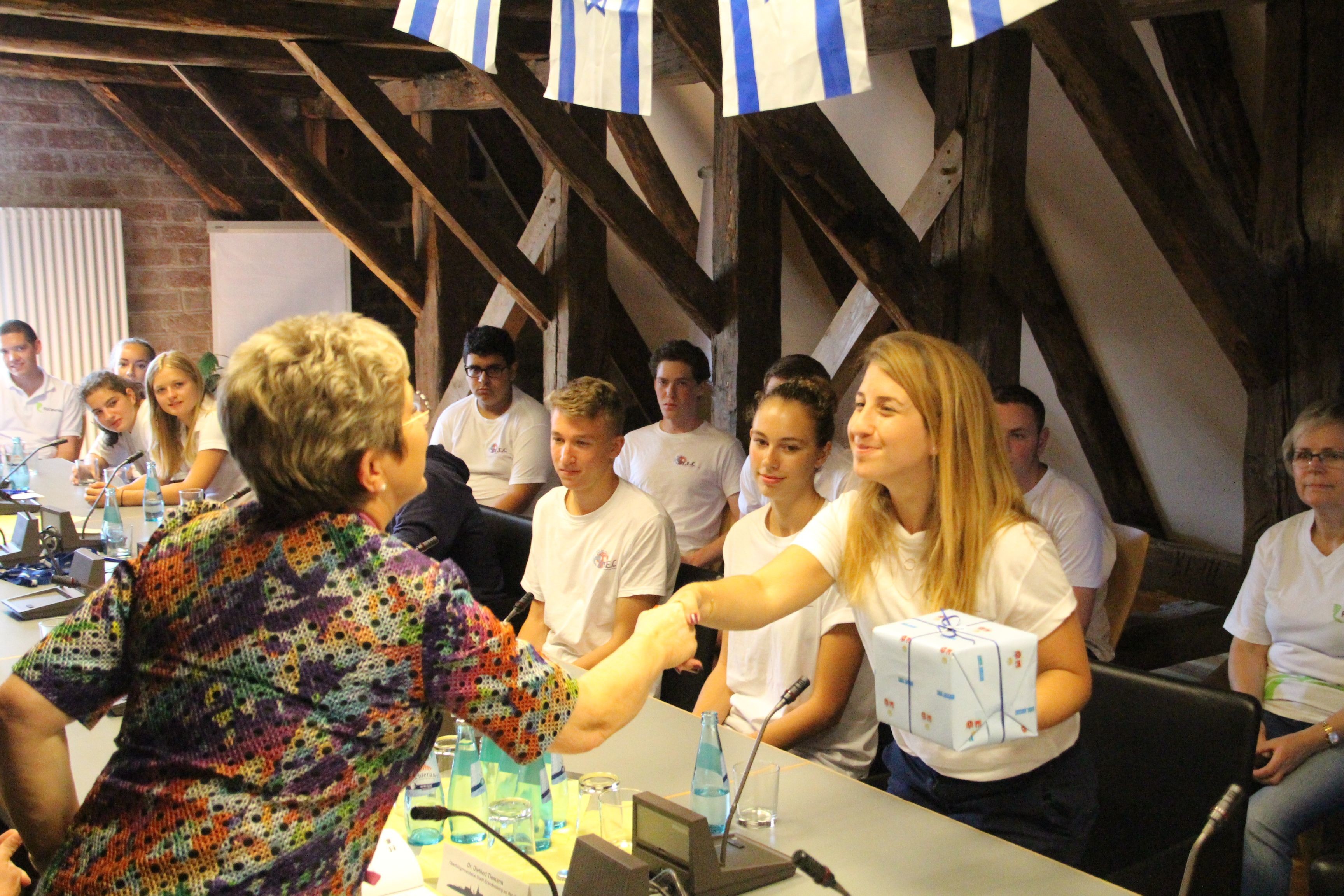 Oberbürgermeisterin Dr. Dietlind Tiemann begrüßte am 24. August 2016 eine Gruppe der deutsch-israelischen Jugendbegegnung Ra´anana im Altstädtischen Rathaus, darunter 19 israelische Jugendliche, ihre 2 Betreuer und 15 deutsche Jugendliche mit Betreuerin sowie den Vorsitzenden des Ra´anana e.V., Herrn Dr. Niels Haberlandt.