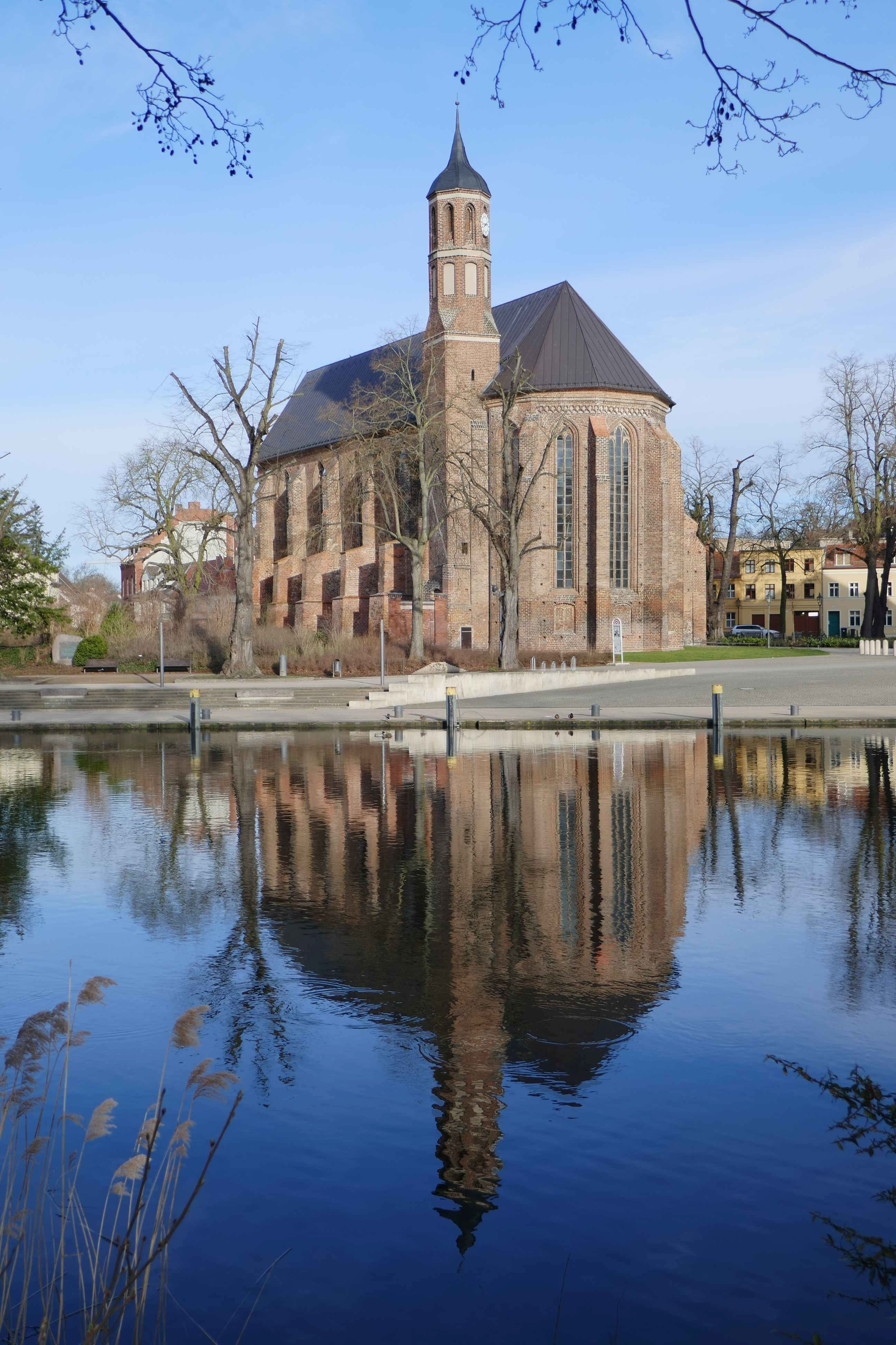 Pfarrkirche ab 1217 nachweisbar, romanischer Vorgängerbau, heutiges Erscheinungsbild geht auf den Stettiner Baumeister Hinrich Brunsberg zurück, der die Kirche 1395-1401 errichten ließ, Hauptwerk der norddeutschen Backsteingotik. Dreischiffige Hallenkirche mit polygonalem Umgangschor und mittelalterlichen Wand- und Deckenmalereien. Spätgotischer Doppelflügelaltar von Gerard Weger 2023/24 restauriert, reiche Ausstattung mit Epitaphien des 16.-18. Jhs., vielfältige Orgelanlage „Tokatha“.