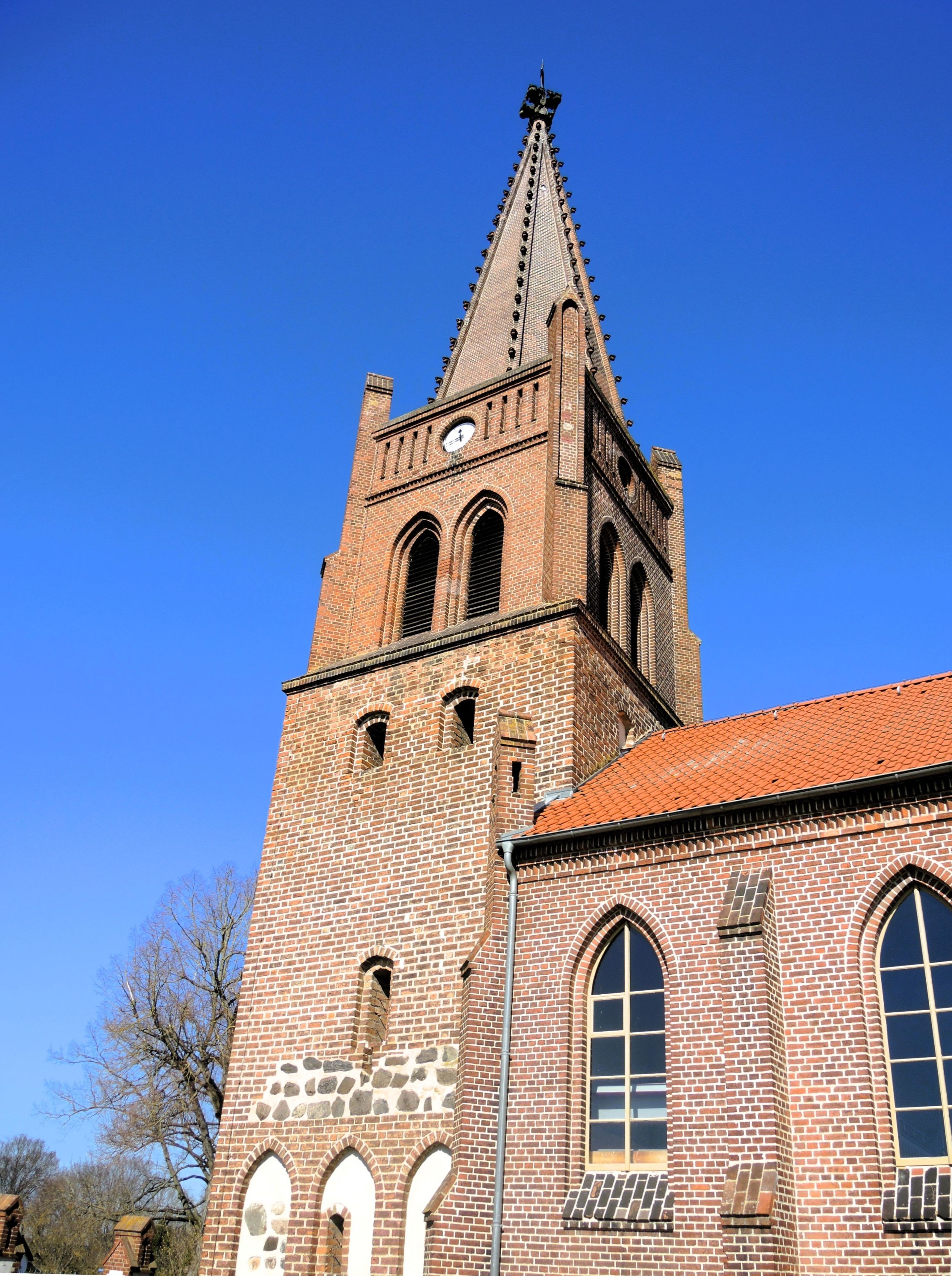 Errichtet 1796, Instandsetzung seit 1997. Schlichte barocke Dorfkirche, über dem Westgiebel quadratischer Turm mit Zeltdach, massiver Westwand und Fachwerkseitenwänden, erhaltene Ausstattung teilweise mittelalterlich.