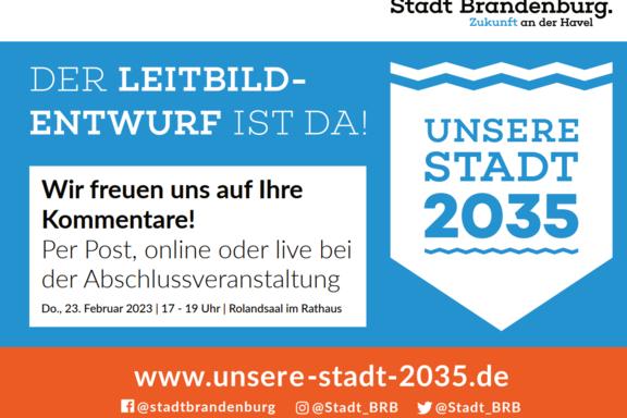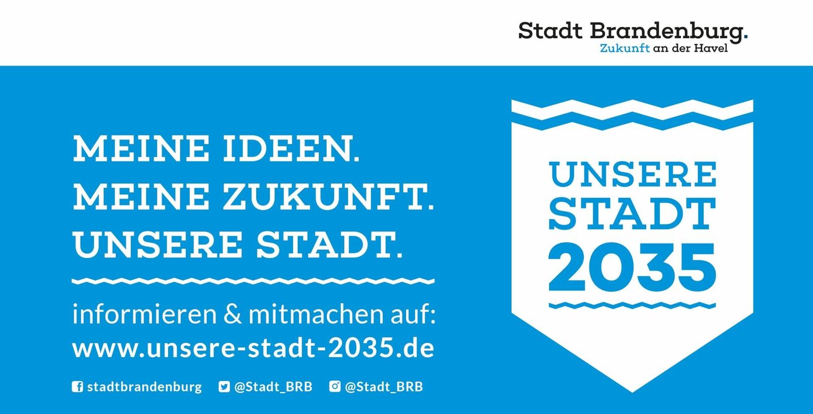 Machen Sie mit beim Stadtdialog zum Leitbild „Unsere Stadt Brandenburg 2035“. Informieren und beteiligen: www.unsere-stadt-2035.de