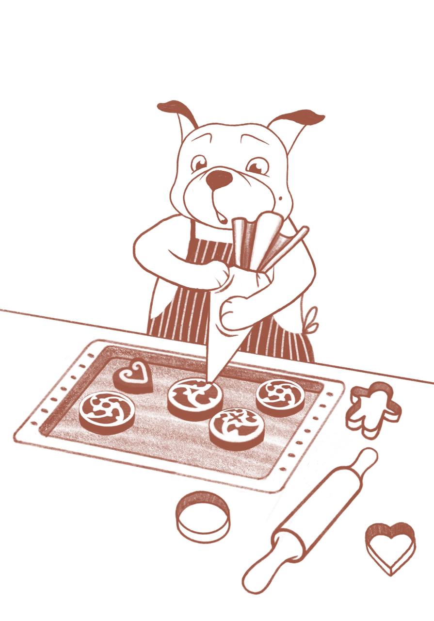 In ihrer Vorstellung entstanden kleine Möpse, die auf zwei Beinen stehen und mit Weihnachtsvorbereitungen beschäftigt sind. Daraus entwickelte sich ein Adventskalender mit 24 Illustrationen. Diese Motive sind nicht koloriert und laden zum gemeinsamen Ausmalen ein. Zusätzlich bietet Yullia Lahutina täglich um 15:30 Uhr einen Zeichenworkshop an. Grundlage ist ein Sketch-Adventskalender, der jeden Tag ein neues Thema vorgibt.