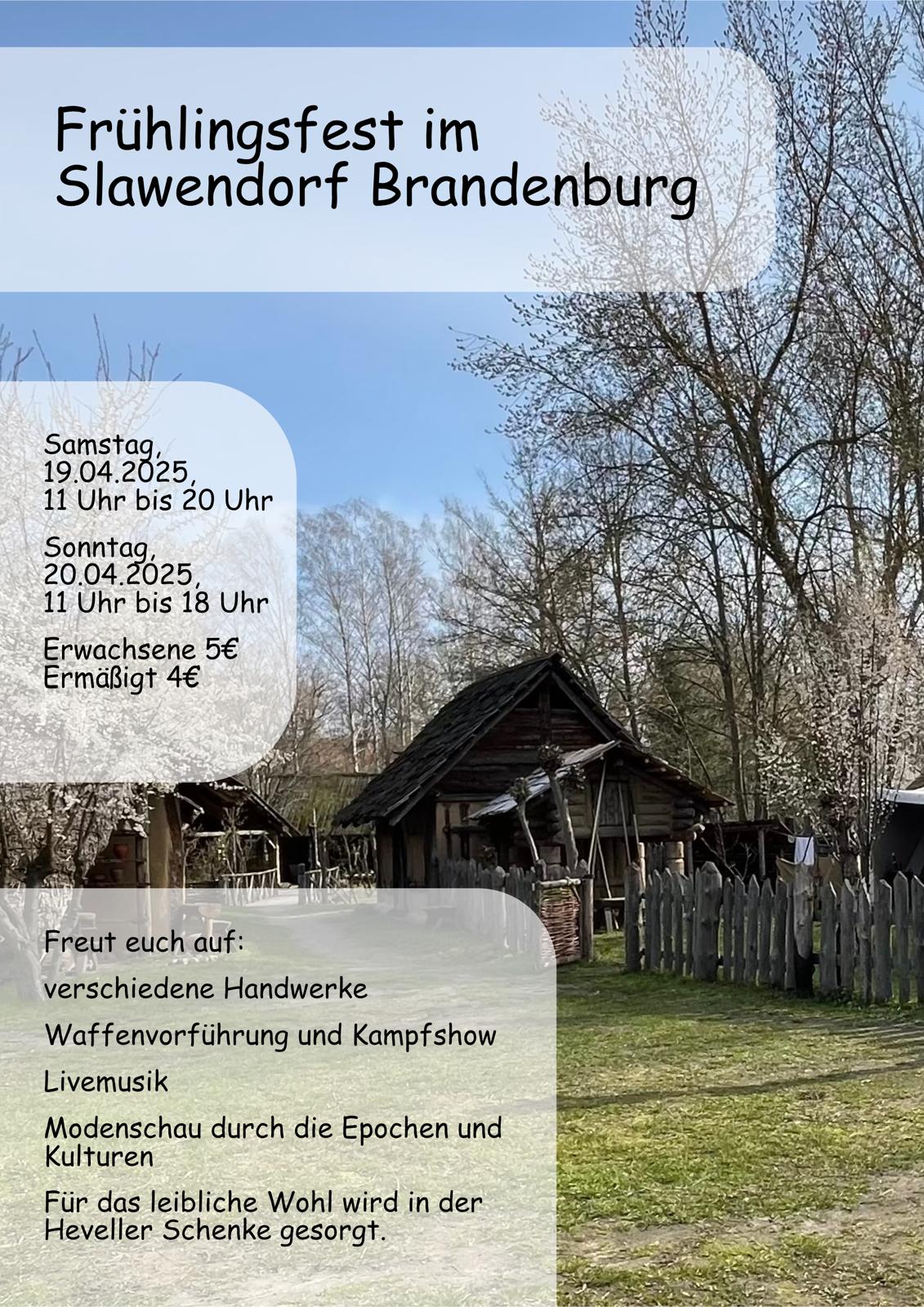 Am Oster-Wochenende lädt das Slawendorf Brandenburg zum Frühlingsfest ein. Besucher erwartet eine faszinierende Zeitreise in vergangene Epochen, begleitet von traditionellem Handwerk, packenden Schaukämpfen und Livemusik.