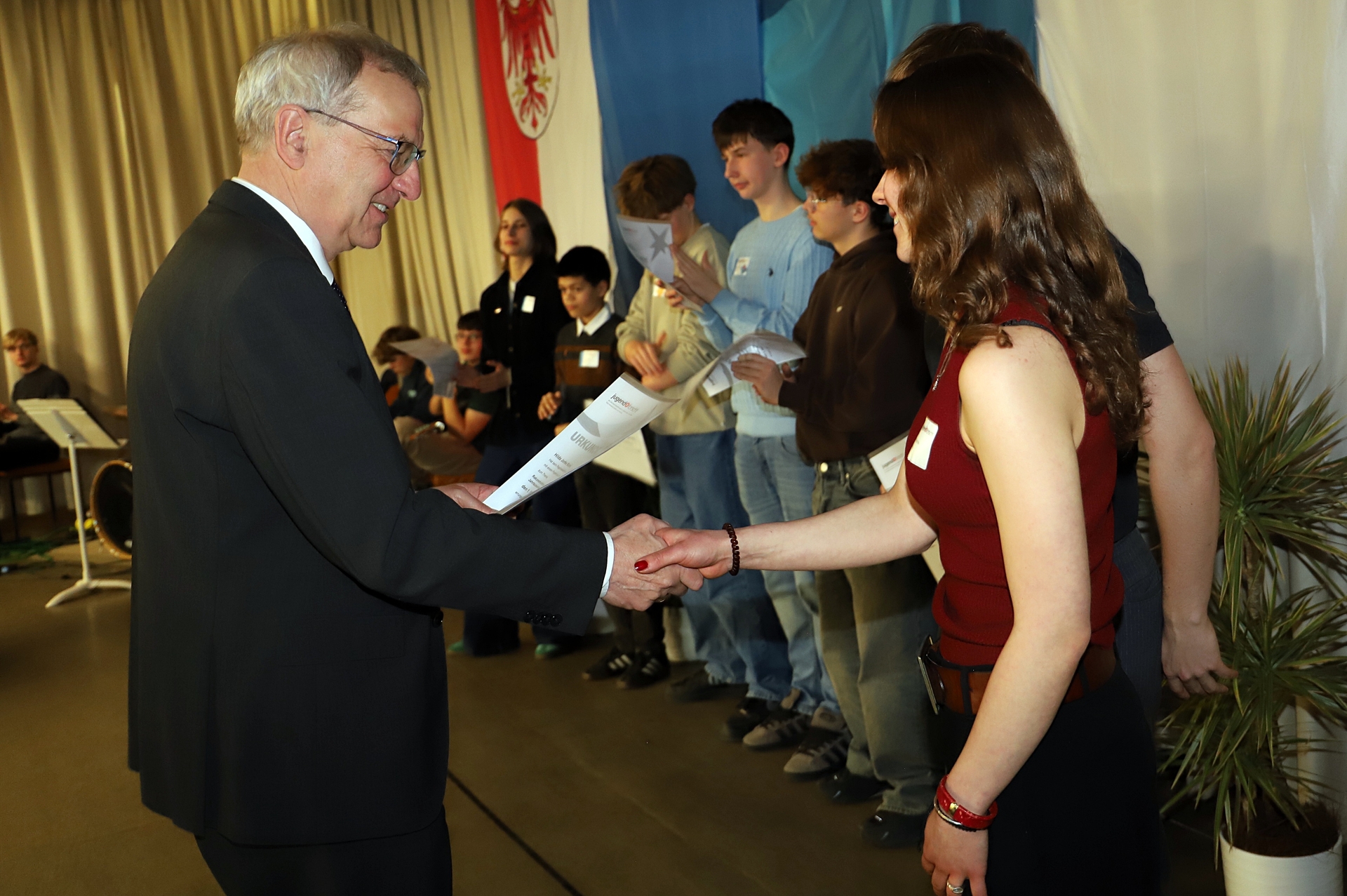 Preise überreichte auch Bildungsstaatssekretär Hendrik Fischer. Er würdigte die Leistungen der Teilnehmenden und betonte die Bedeutung von Neugier, Verantwortungsbewusstsein und eigenständigem Denken.