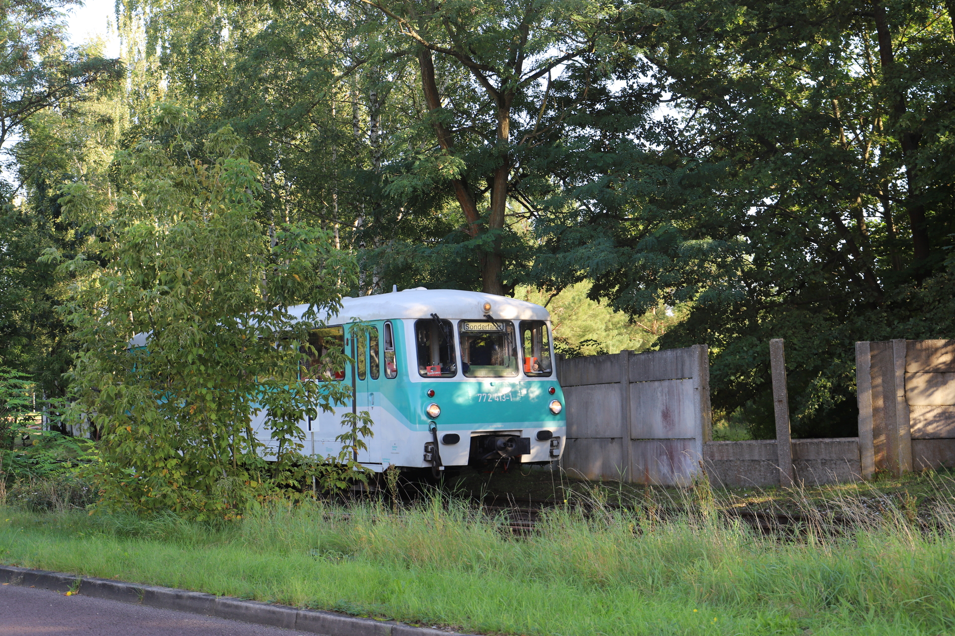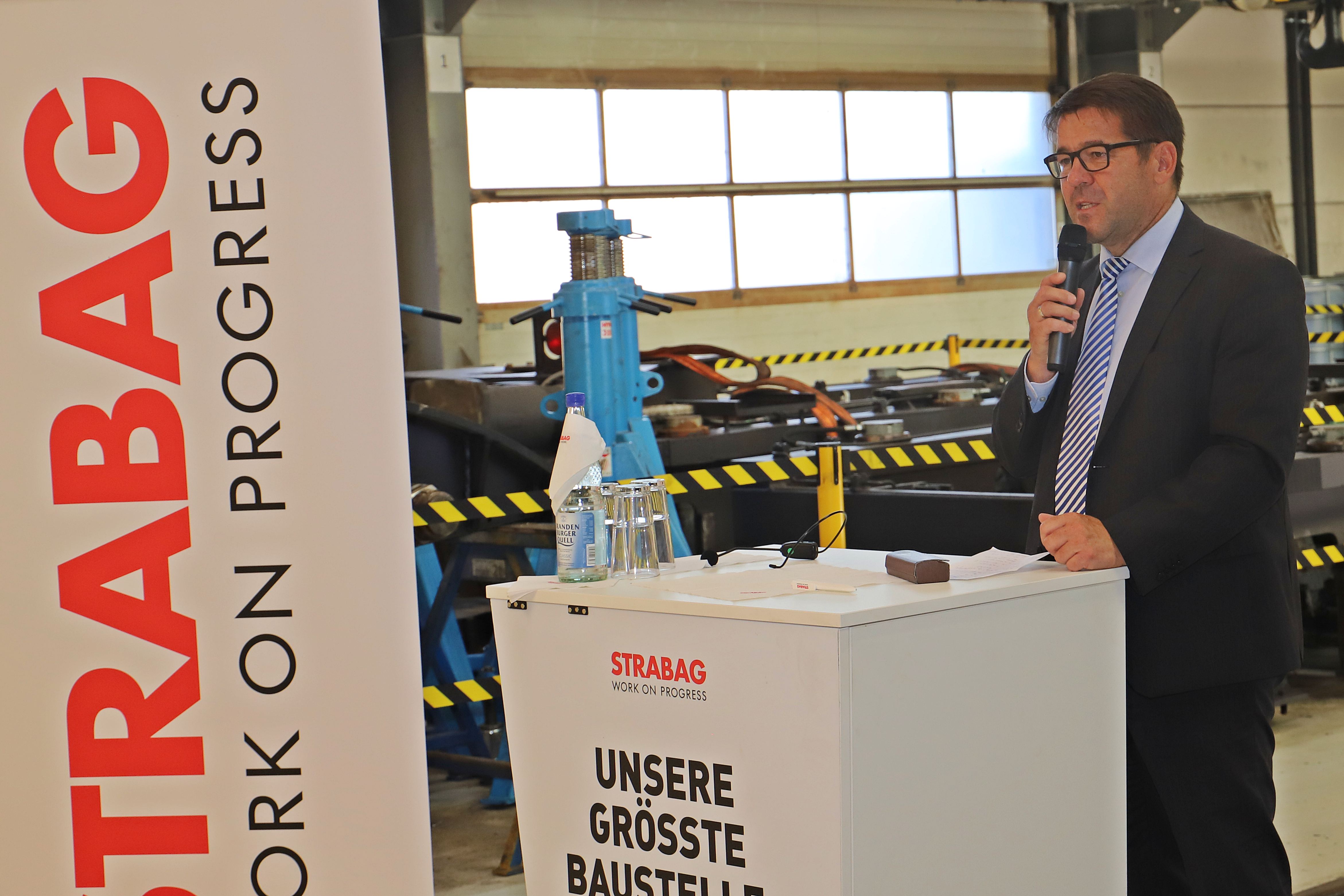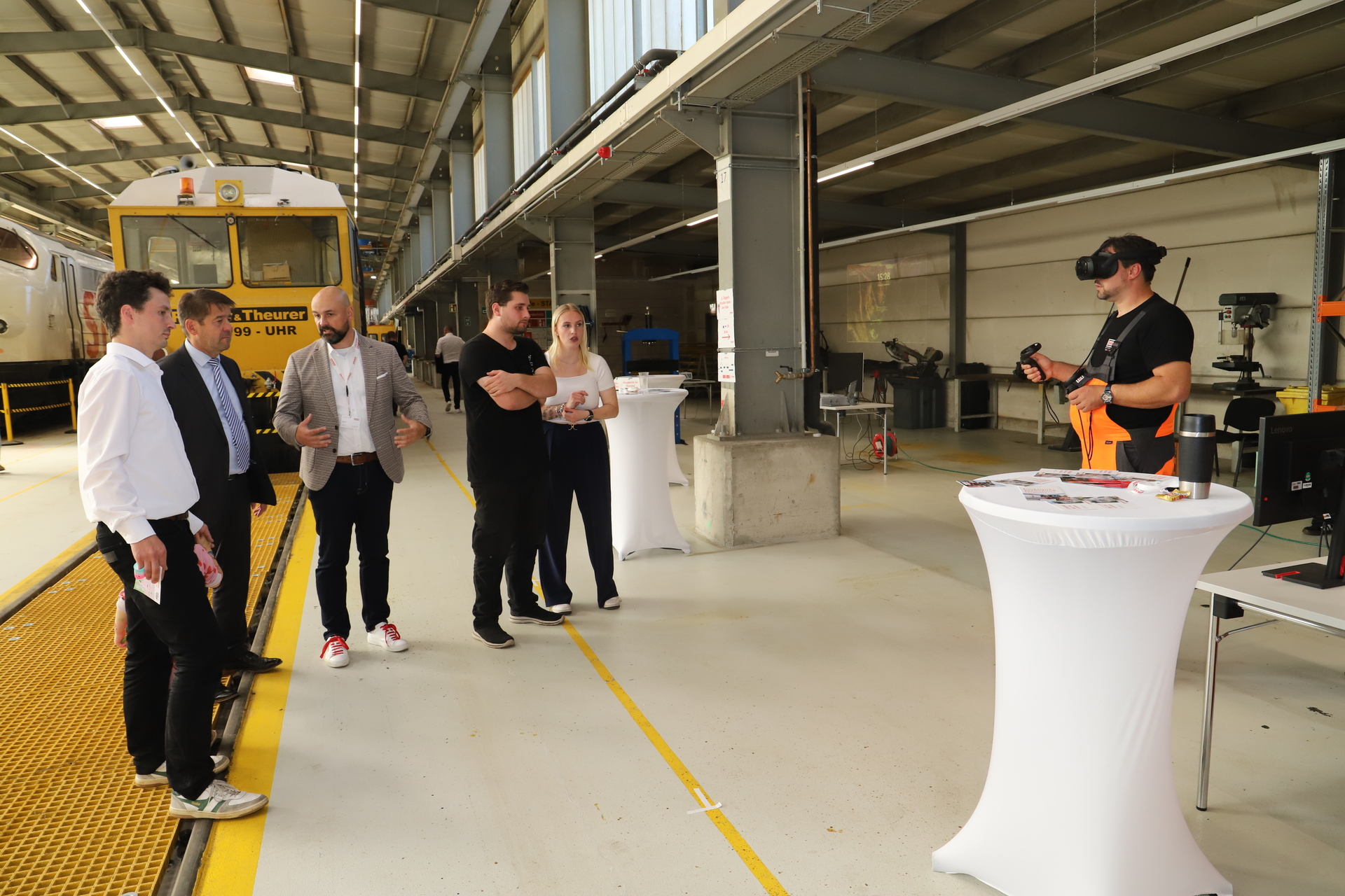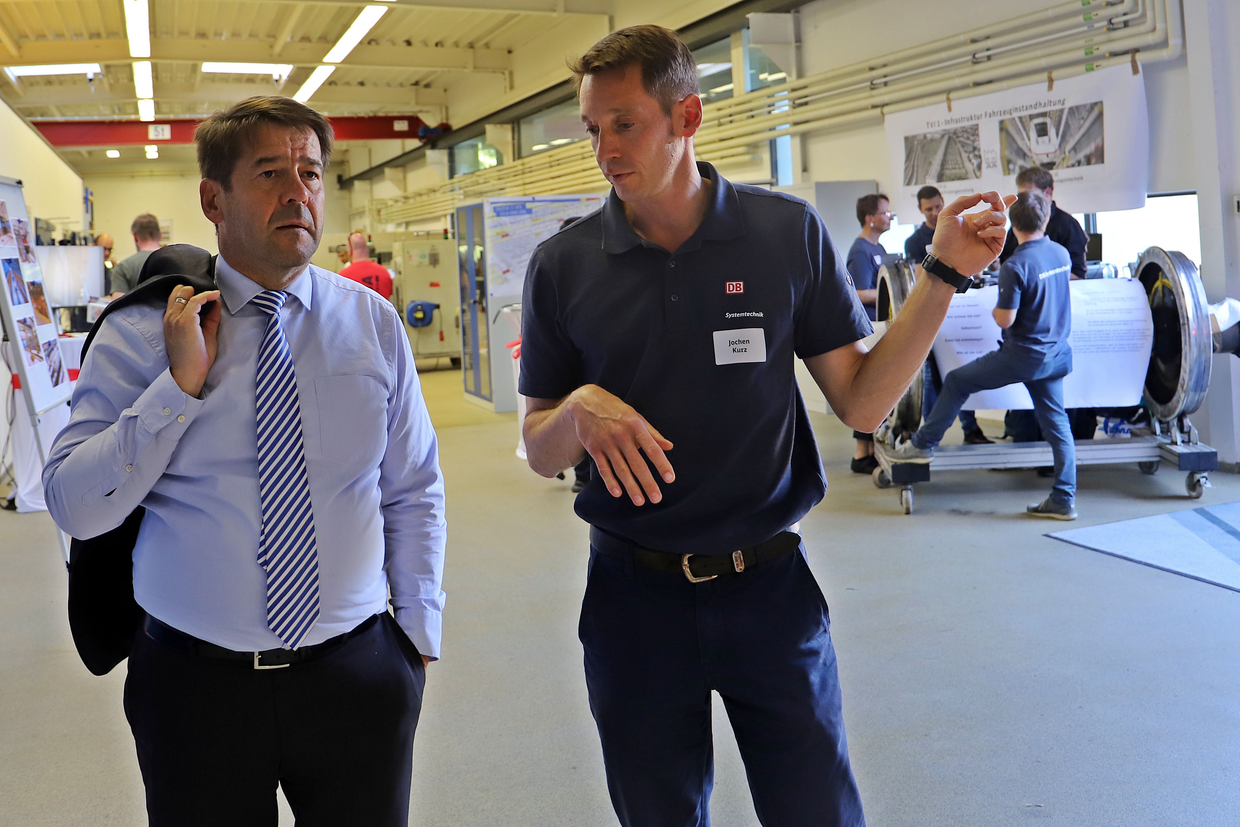 Oberbürgermeister Steffen Scheller eröffnete zunächst bei der STRABAG Rail mit dem Geschäftsführer Danko Rupprecht offiziell den Tag und besichtigte in der Reparaturhalle neben Schotter- und Bettungsreinigungsmaschinen eine Lok. Anerkennend sagt er: