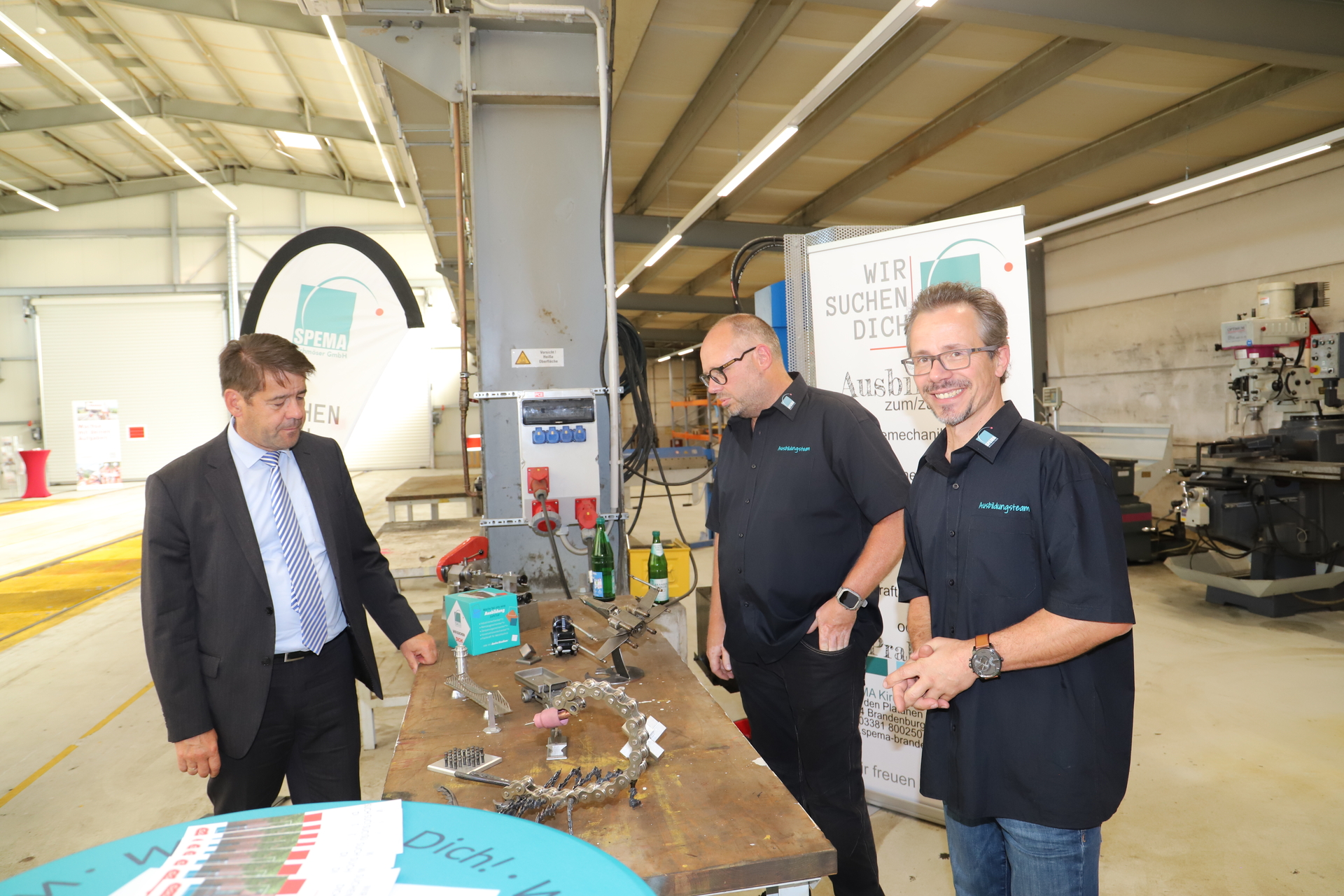 Bei voestalpine Railway Systems, die derzeit mit mehr als 500 Mitarbeitern Weichen und zugehörige Ersatzteile bauen, die weltweit verkauft werden, traf der Oberbürgermeister Standortleiter Sven Kirchner, der sich über die vielen Besucher freute.