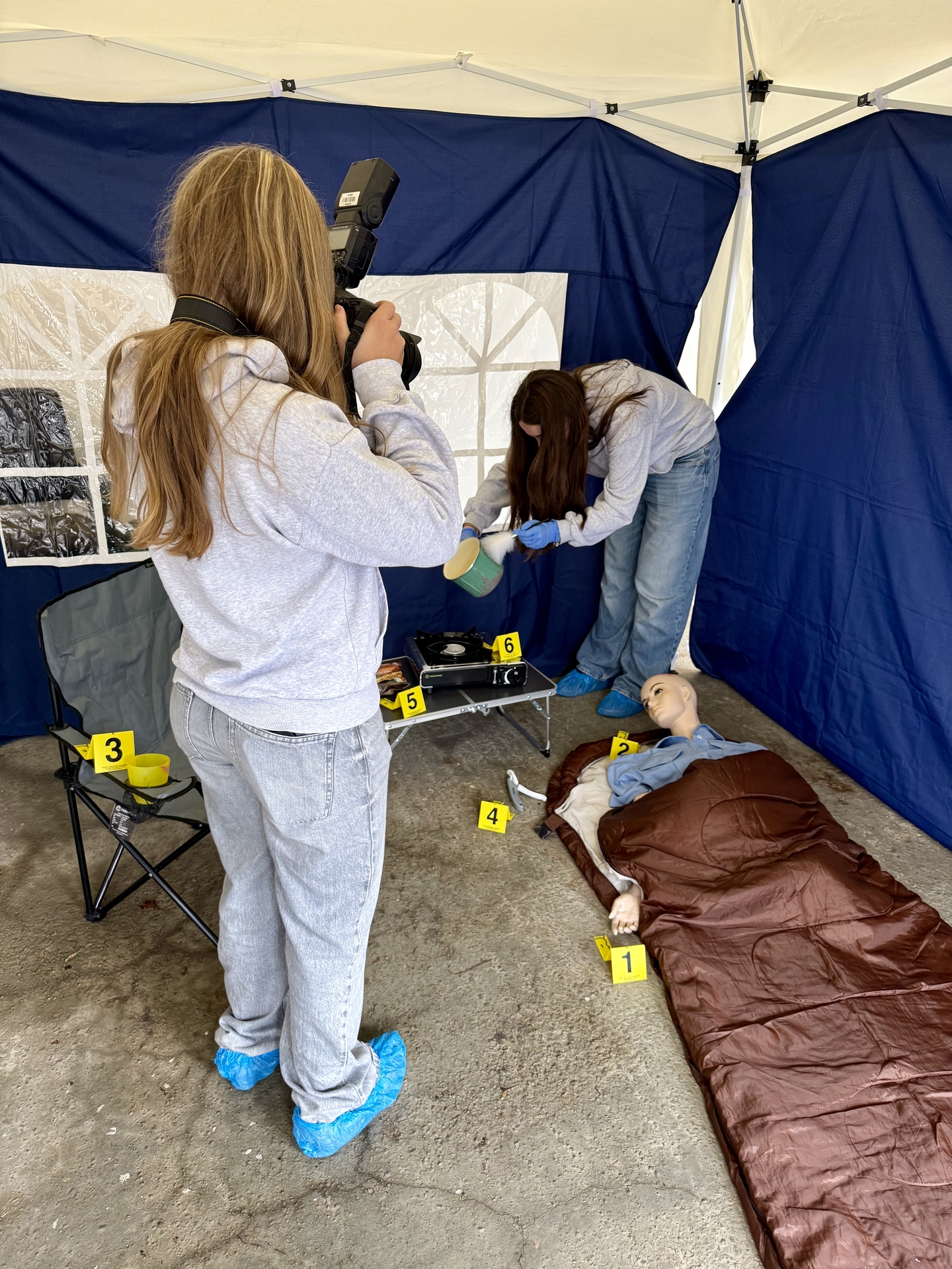 Einen Ansturm interessierter 8.- bis 10.-Klässler bescherten die regionalen Berufsorientierungsangebote auch der Polizeiinspektion Brandenburg, die von Ausbildungs- und Studienangeboten via gerappten Werbevideo kündete, Einsatztechnik erklärte, an der Aufarbeitung eines fingierten Verkehrsunfalls mitwirken ließ und die Gäste zu Tatortermittlern werden ließ. Dafür war eine Campingplatzszene erfunden und aufgebaut worden, die Puppe Paula das Leben gekostet hatte. Die Arbeit der Polizeikräfte, Kriminaltechniker und des Kriminaldauerdienstes übernahmen, angeleitet von Profis, die jungen Gäste. Am Ende konnten sie die Täterin herausfinden und stolz zum nächsten Informationsstand wandern.