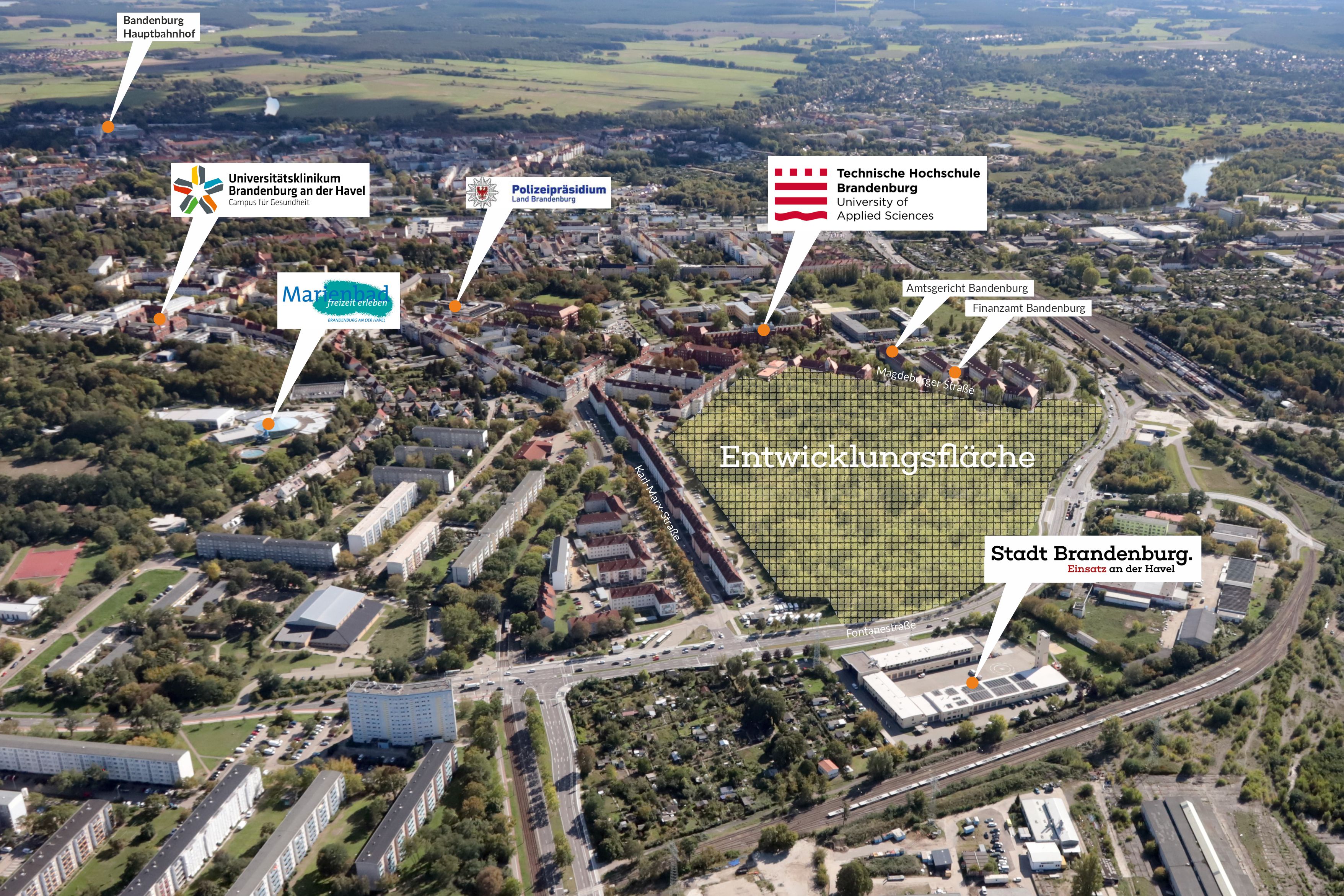 Der Großteil der unbebauten Fläche befindet sich im Eigentum des Landes Brandenburg (94.113 m²), ein 50 bis 100 Meter breiter Streifen entlang des Zentrumsringes ist Eigentum der Stadt Brandenburg an der Havel (38.264 m²). Im Flächennutzungsplan ist die Fläche als gemischte Baufläche sowie öffentliche/private Grünfläche ausgewiesen.