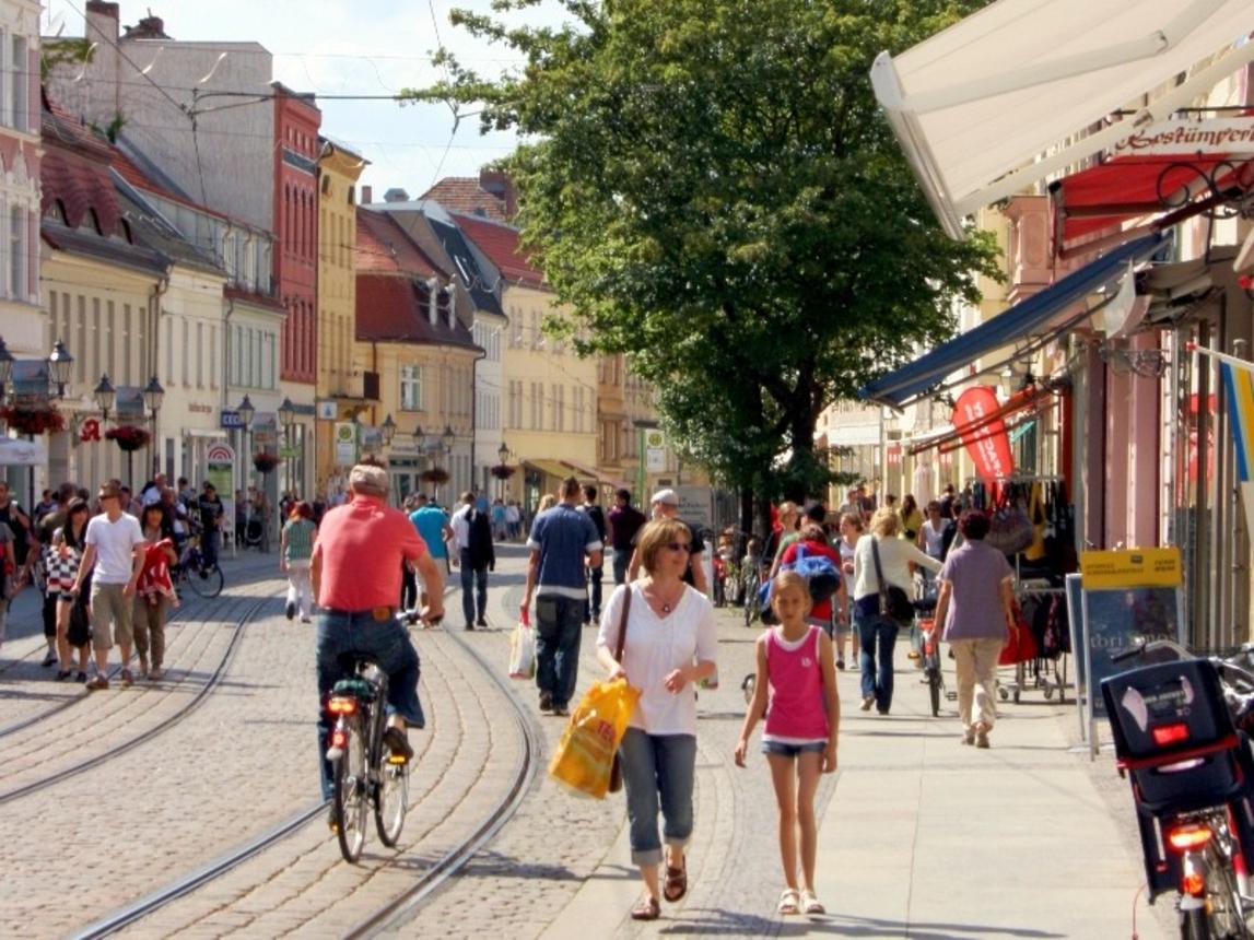 Das Stadtzentrum ist ein attraktiver Standort für Handel, Gastronomie und Wohnen, aber auch zugleich kultureller und touristischer Anziehungspunkt. Damit gestaltet sich das Leben in der Stadtmitte vielseitig: Neben dem bunten Treiben rund um den Neustädtischen Markt und die Jahrtausendbrücke lässt es sich herrlich Entspannen am Salzhof- und Heinrich-Heine-Ufer oder in einer Liege am Fischerareal mit wunderschönem Ausblick auf die Dominsel. Entscheiden Sie sich für einen Einkaufsbummel entlang der Hauptstraße und Steinstraße oder in der Sankt-Annen-Galerie; Ihnen steht ein umfassendes Waren- und Dienstleistungsangebot zur Verfügung. Von traditionellem Handwerk bis hin zu einzigartigen Boutiquen ist für jeden Geschmack und Bedarf etwas dabei. Die Wege im Zentrum sind kurz und so gelangen Sie schnell von einem Ort Ihrer Wahl zum nächsten. Und sollten Ihre Beine doch einmal müde werden, bringt Sie unsere Straßenbahn zuverlässig durch die Stadt.